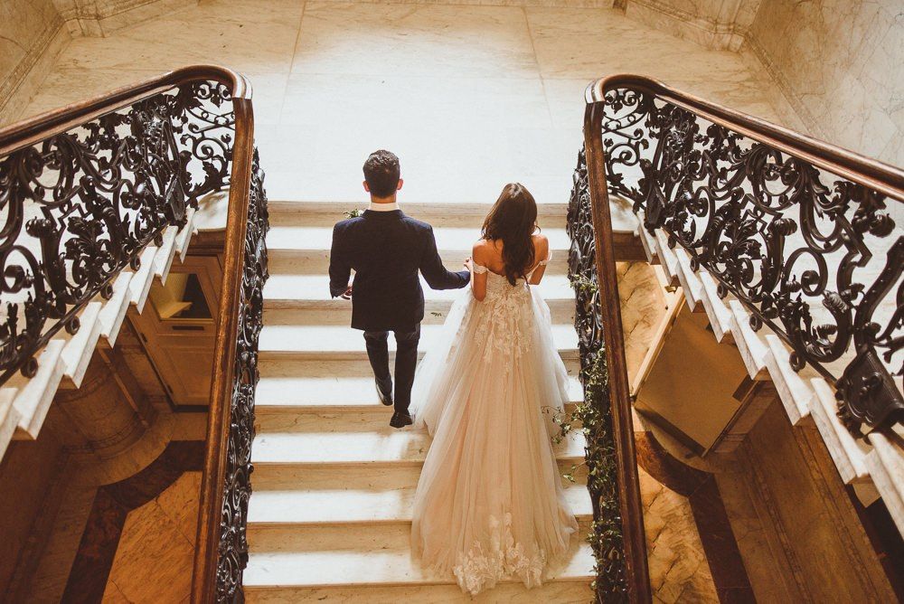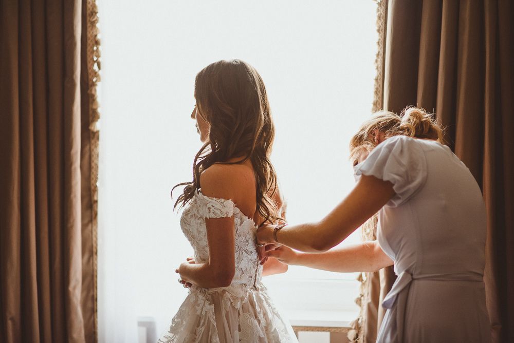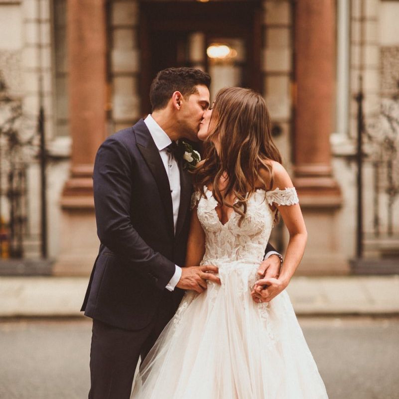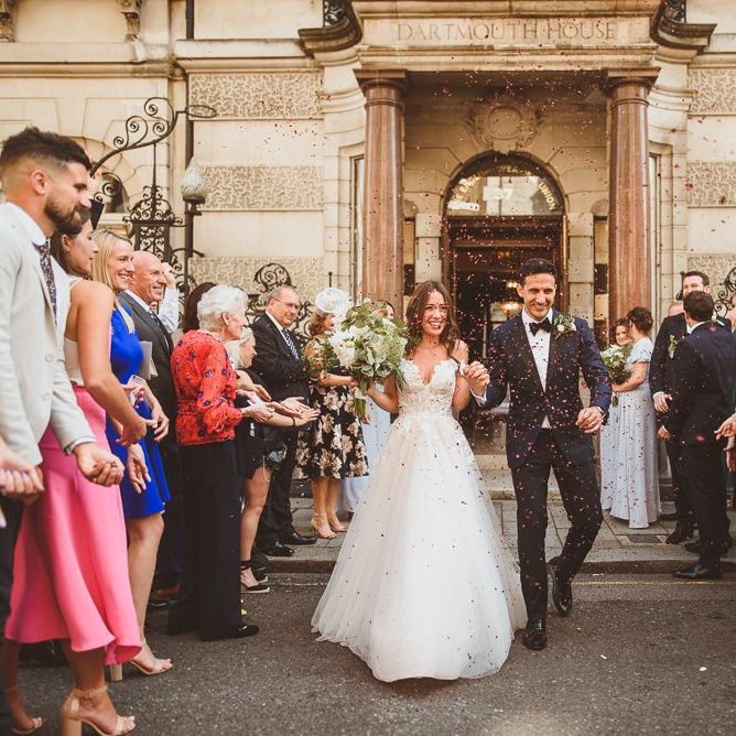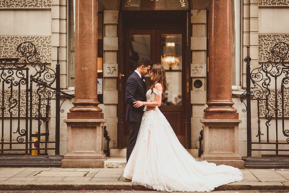 Finding the most perfect venue. We always said it doesn't matter where we get married as long as it's a little 'bit of us'. This took us to villas in the Italian hills, to mid-century halls in Derbyshire and Kent, our hometowns, to London where we both live and adore. When we found Dartmouth House we both fell in love - it's right in the heart of Mayfair and yet feels really secluded. I love the rich history it has, a London townhouse of a Lord, with striking original features. But my favourite part - the Italian courtyard out the back, complete with water fountain and lemon trees. Was thrilled to find somewhere we could be in the sunshine - hugely important to me! It felt so special to be in the city we love and yet feel like we were in an exclusive sanctuary of grandness and sunshine with all our family friends.