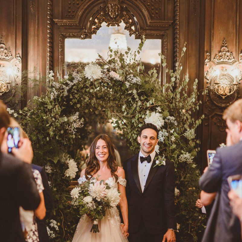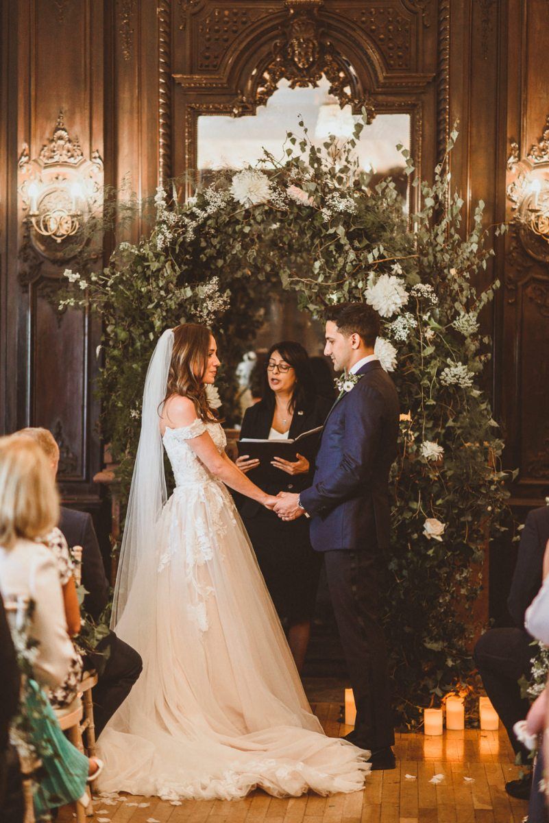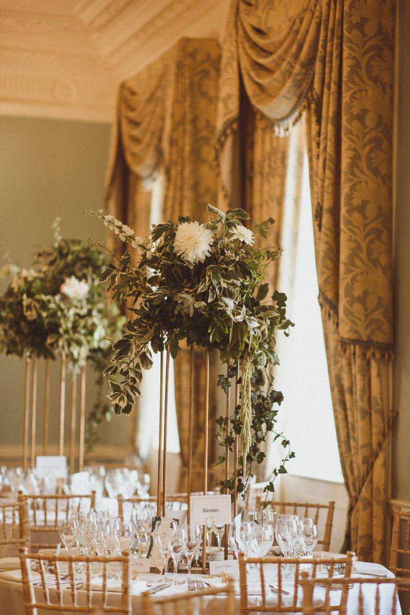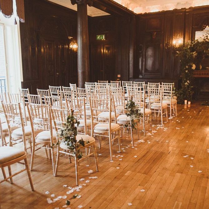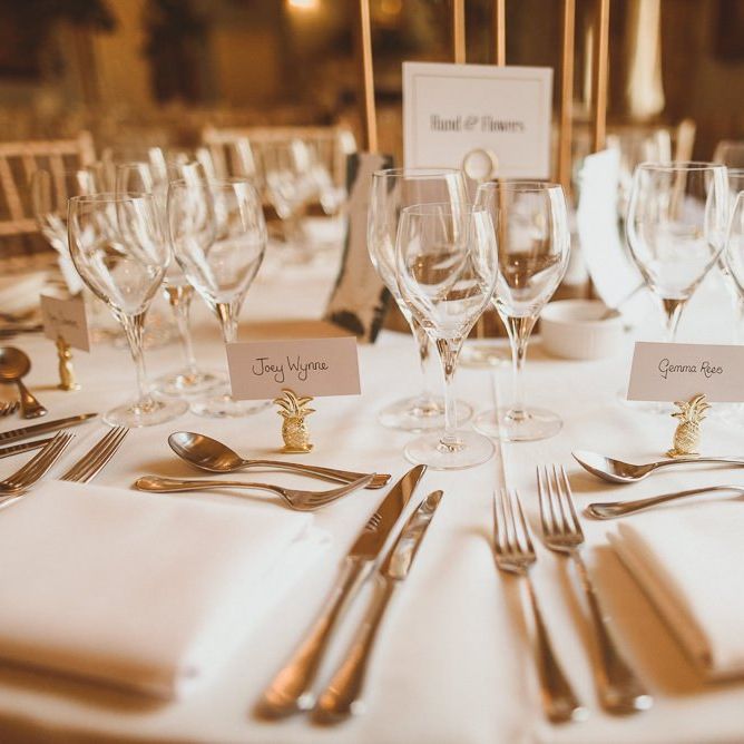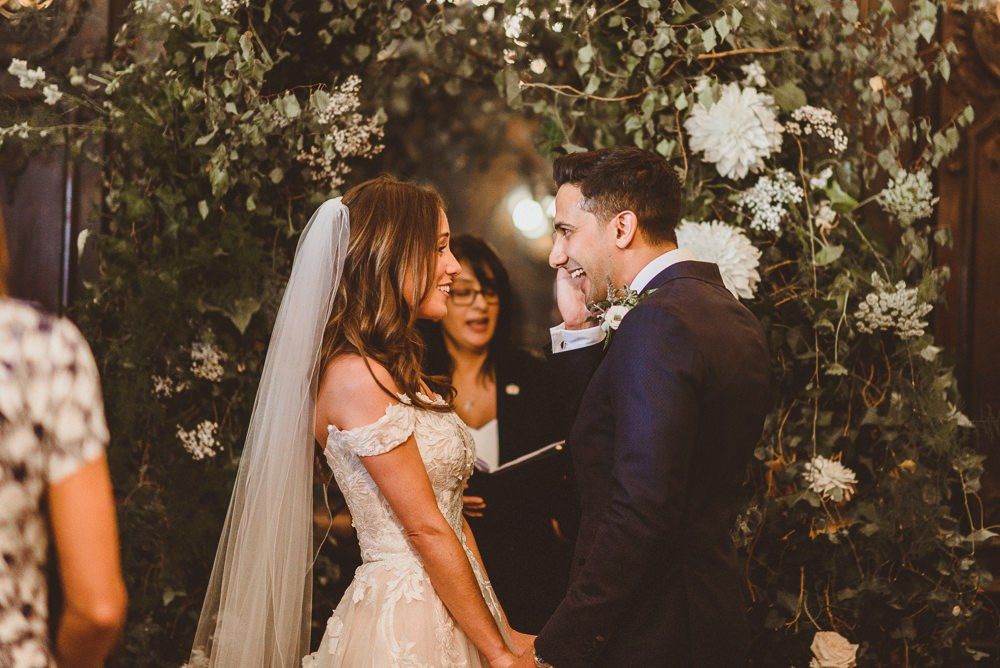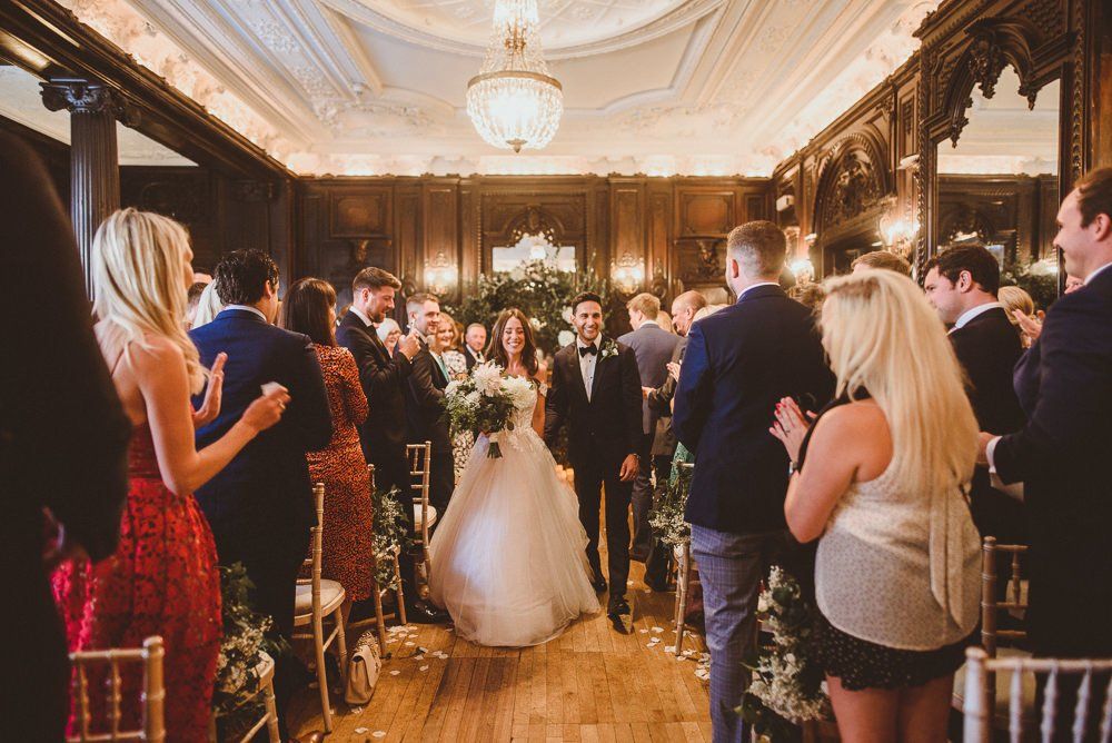Although we weren't looking for somewhere we didn't need to do much to in terms of decorating, Dartmouth House happened to be such that we didn't need to do too much to change it, just enhance it and put our own twist. The vibe was botanical/art deco. So lots of greens & leaves plus white/cream/peachy flowers to bring it to life. We had foliage up the stairway and my favourite - a huge foliage arch at the top of the aisle. We wanted to show our playful & adventurous side in the flowers & small touches. I love pineapples (I was dressed up as a pineapple on my hen) so they featured subtly e.g. the name cardholders. We named the tables after our favourite Michelin restaurants as we go to one for every birthday and anniversary.