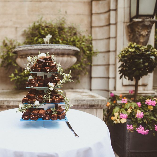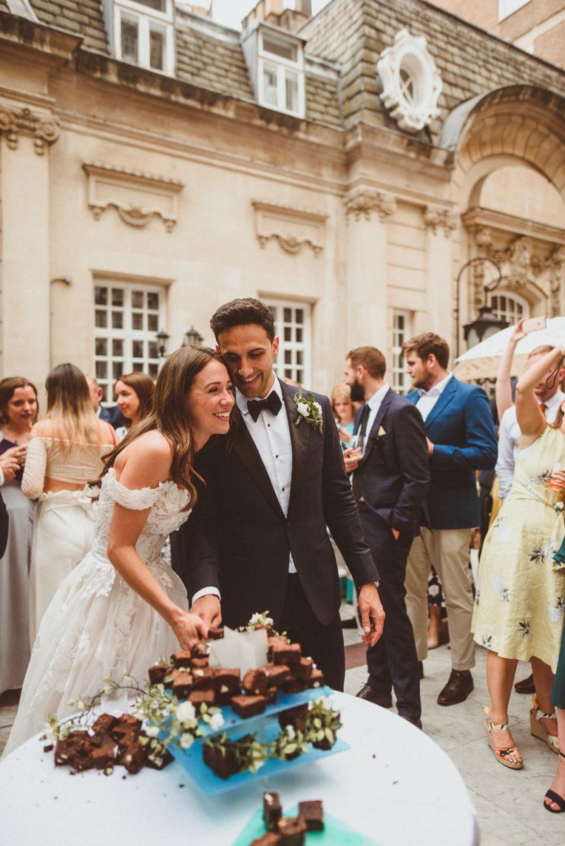 Martina Liana Dress for London Wedding with Brownie Tier Cake