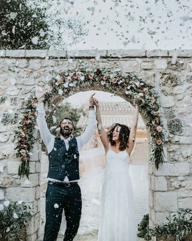 The inspiration behind the styling was guided from the natural scenery. We wanted to adapt to the natural colors and vibes. The olive trees, the old olive grove as well as the stony church led us to a rather boho styling.