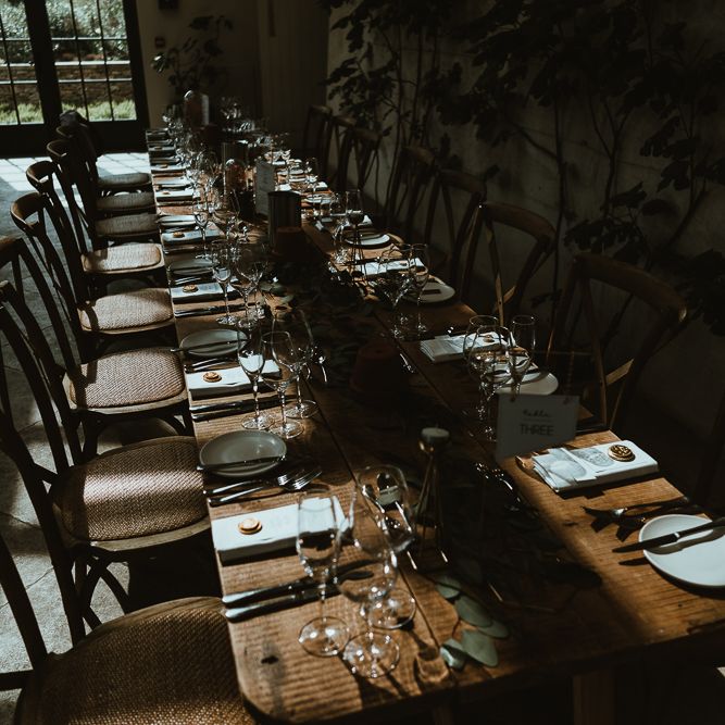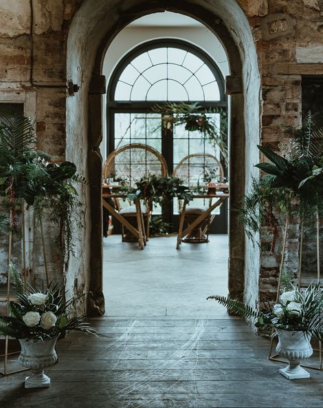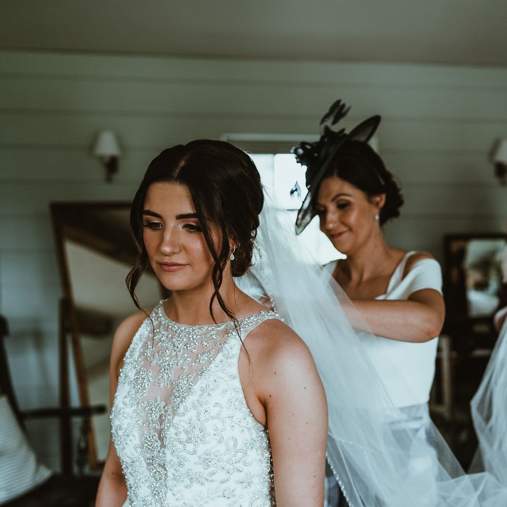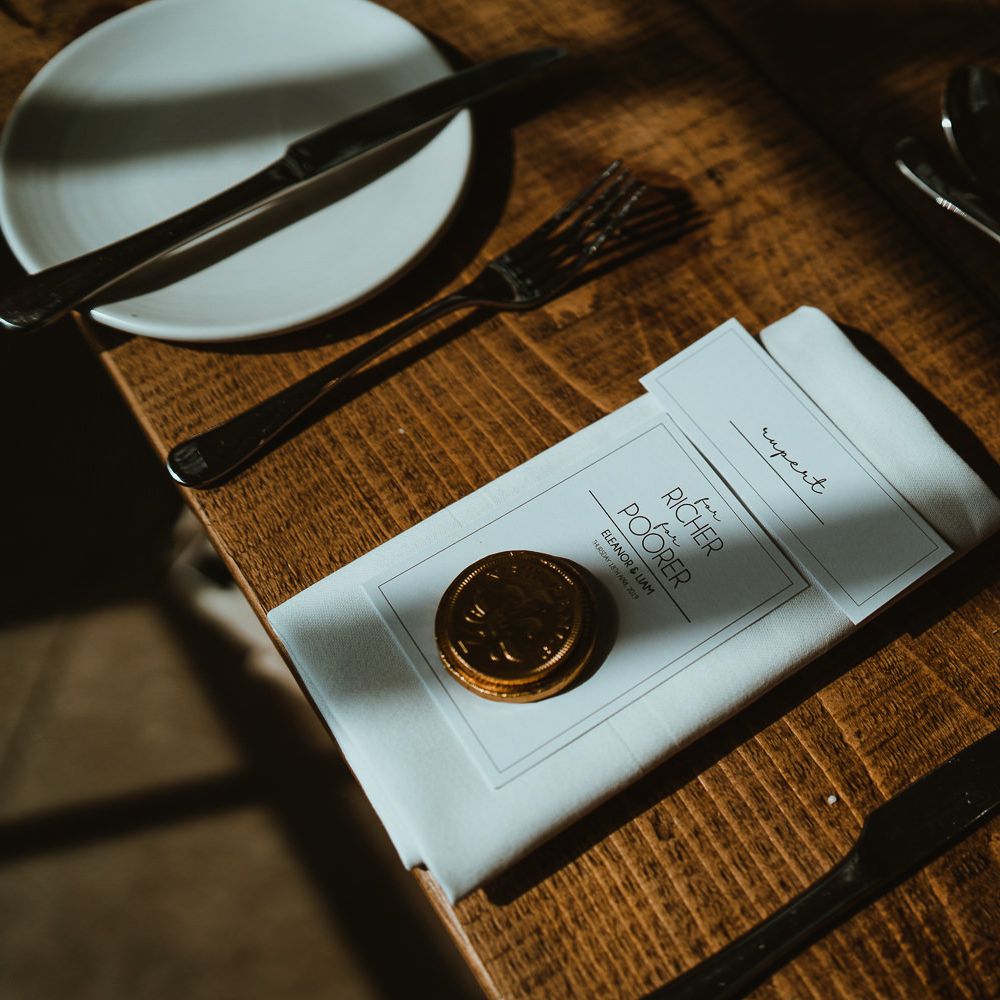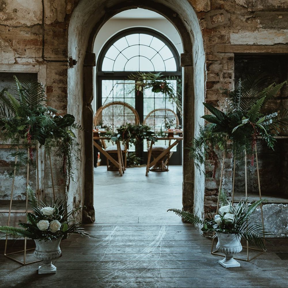 Boho-glam was our wedding vibe. We wanted the day to feel relaxed and the venue to be enhanced with natural beauty by filling it with flowers and foliage. We chose to have gold accents running throughout, which added an element of sophistication and glamour. Like most brides, I browsed Pinterest when searching for inspiration, but got creative by introducing modern, geometric gold structures. The hexagon moon gate was the star of the show, entwined with foliage and flowers, giving height to the floral arrangements that flowed throughout the venue.
