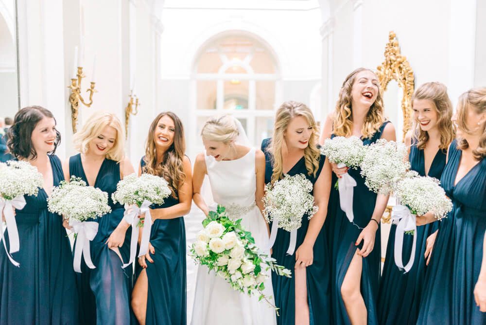 Blue Bridesmaid Dresses For Classic Wedding At Brympton House