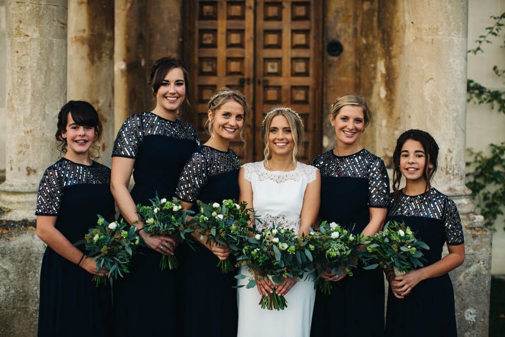Elmore Court Wedding with Silver Mist TH&TH Bridesmaid Dresses and White and Green Wedding Flowers