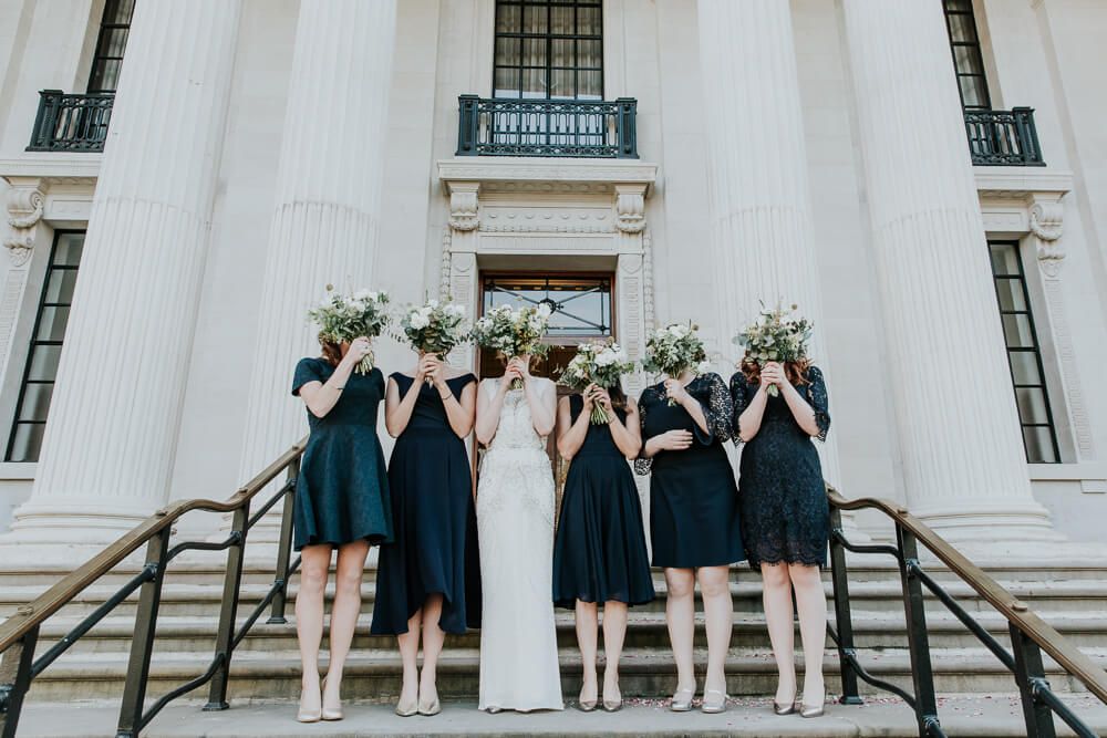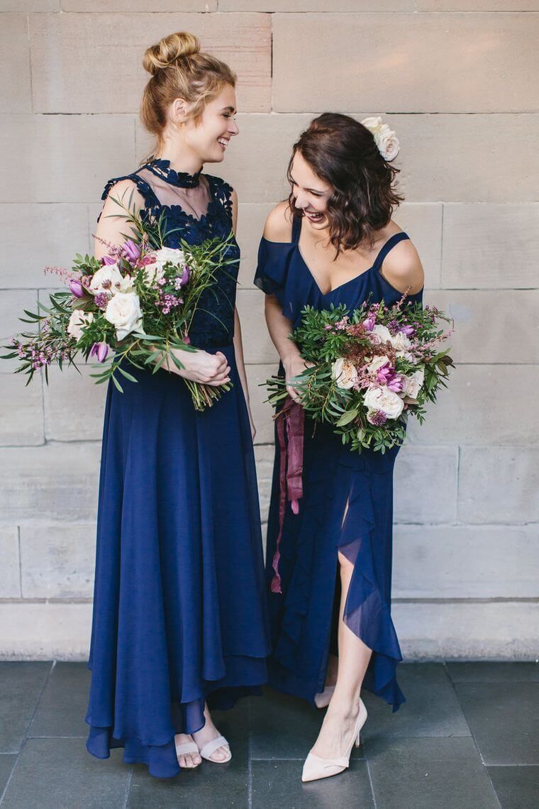 Blue Floral Bridesmaid Dresses with Wildflowers