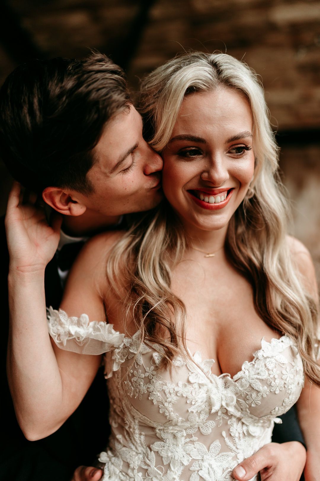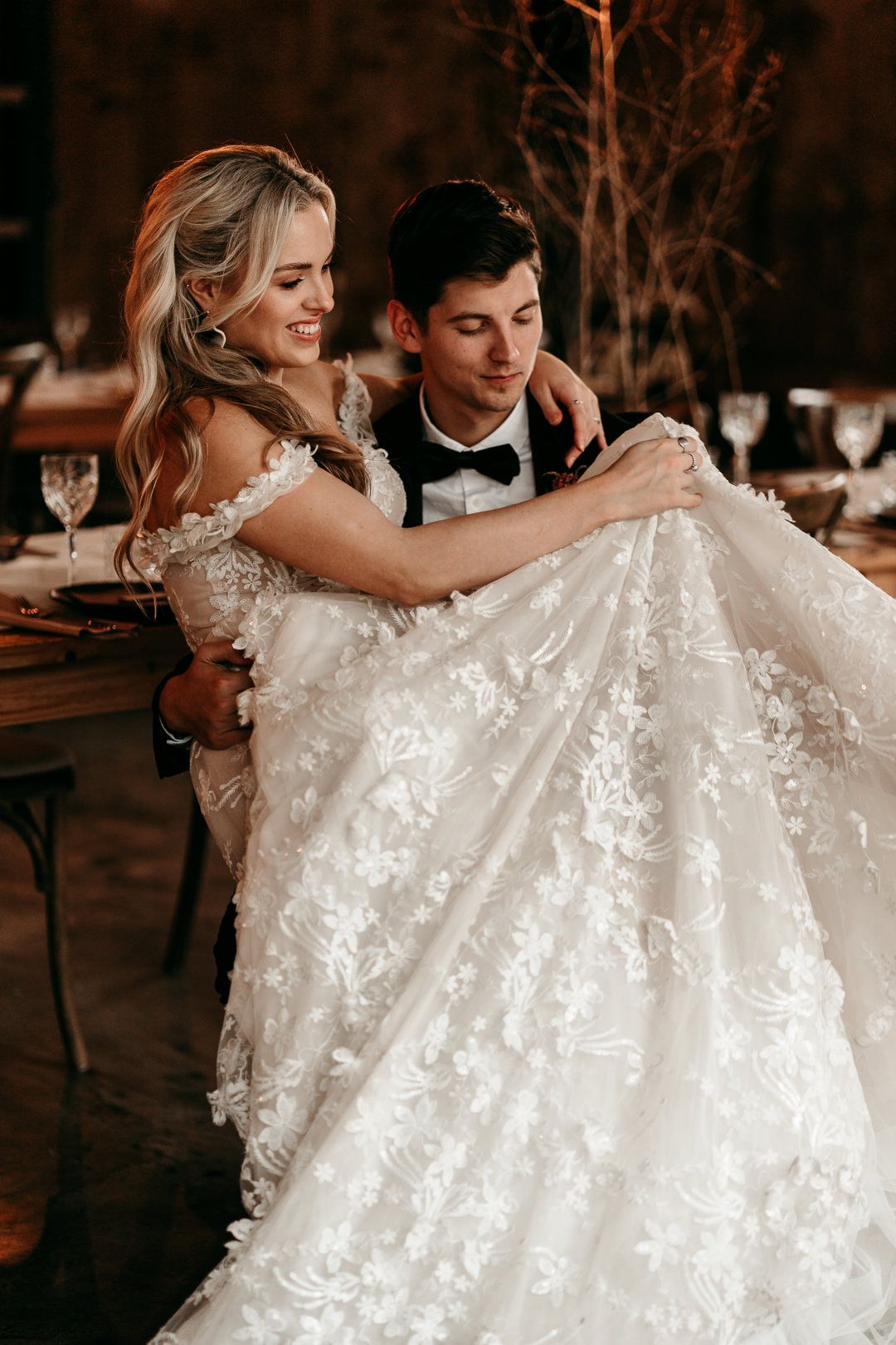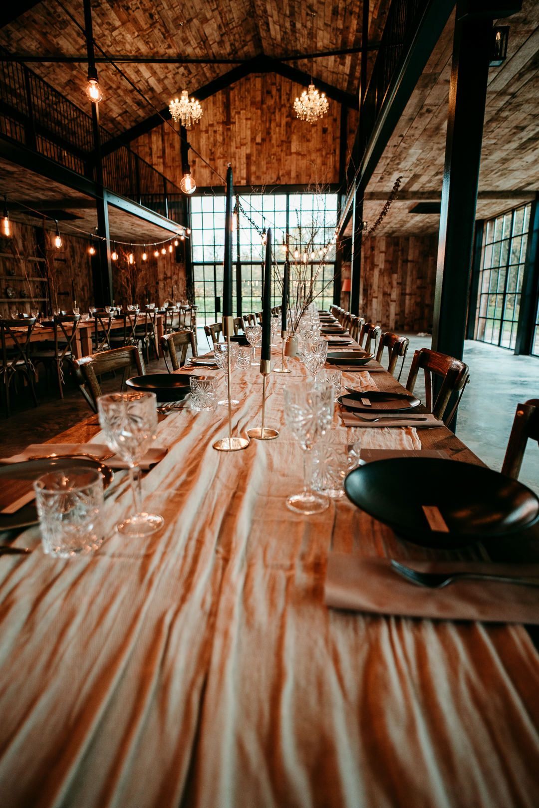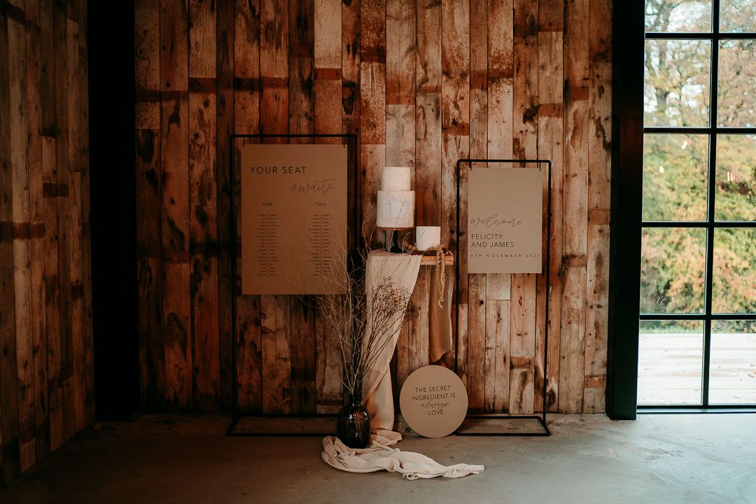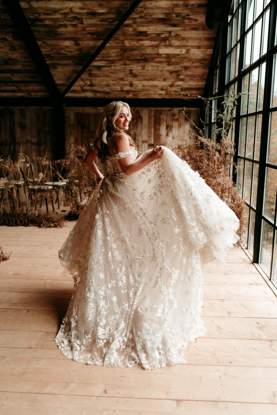 Hidden River is set in a beautifully untouched corner of the Cumbrian countryside along a winding river. The styling for the shoot at Hidden River was very much inspired by the venue and the season. The stylist wanted to incorporate the textures of dried materials and florals and show that a darker colour palette can be just as beautiful, in the right setting.