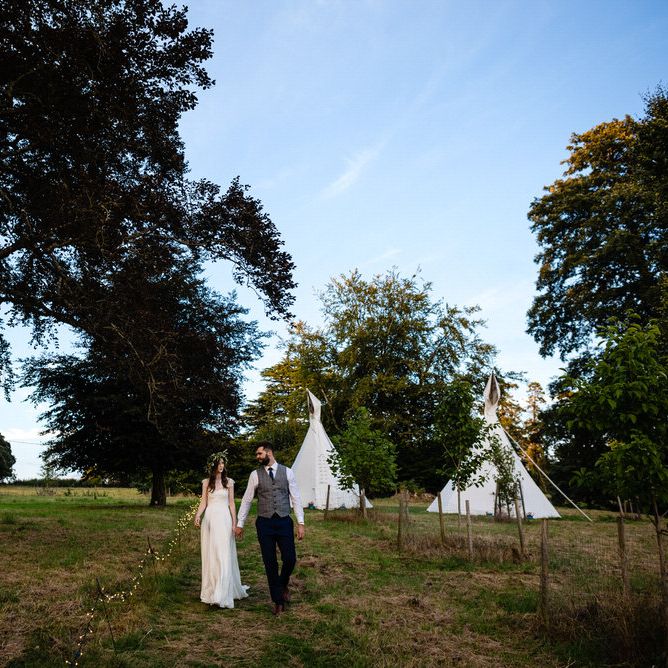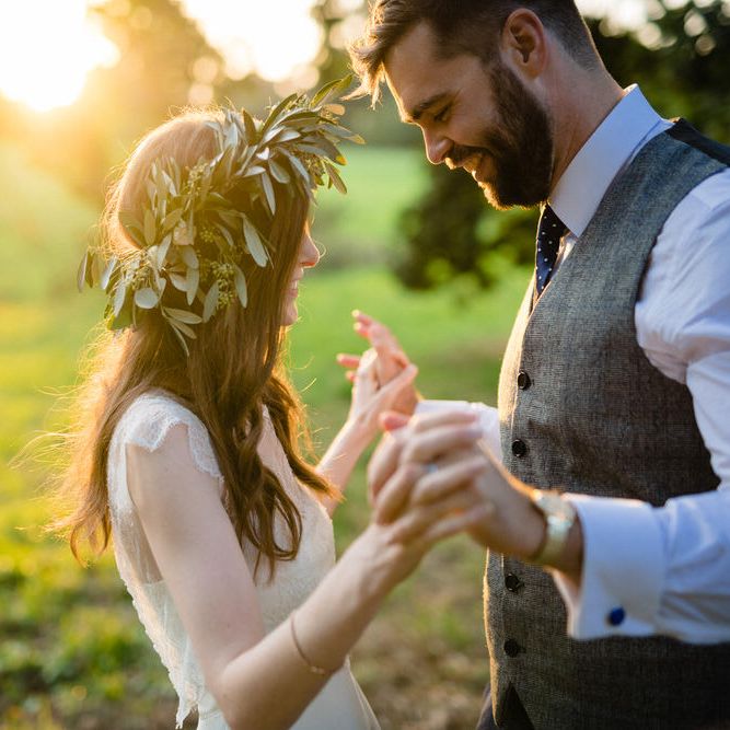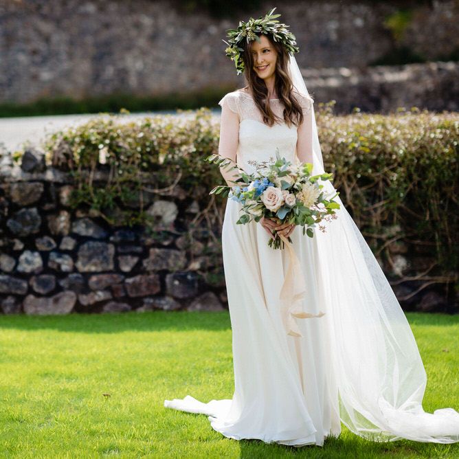 Classic Pennard House Wedding with Bride In Charlie Brear Wedding Dress and Flower Crown
