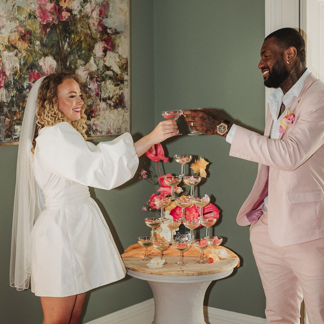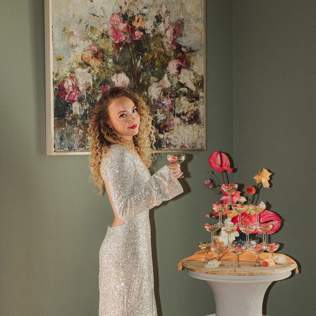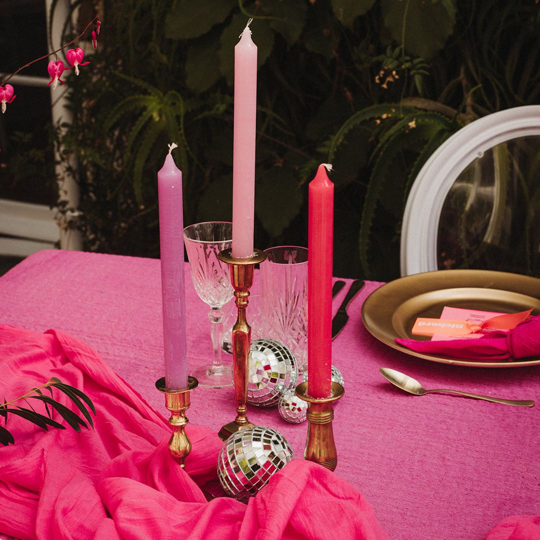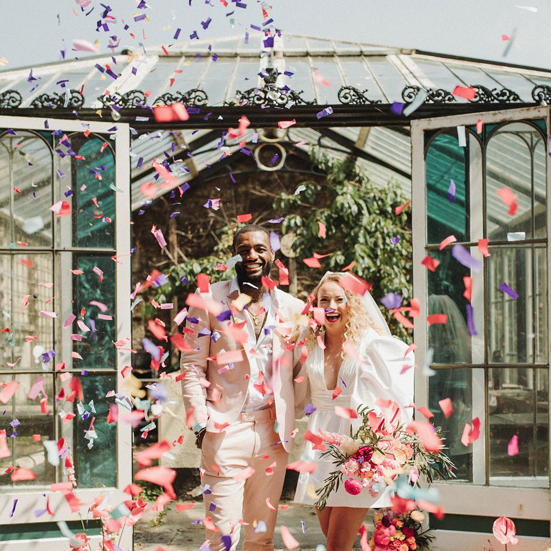We included disco balls in our table set-up and biodegradable confetti canons full of colour for that extra wow factor. The wedding cake also reflected the style of the shoot with disco balls and bright pink colouring.
