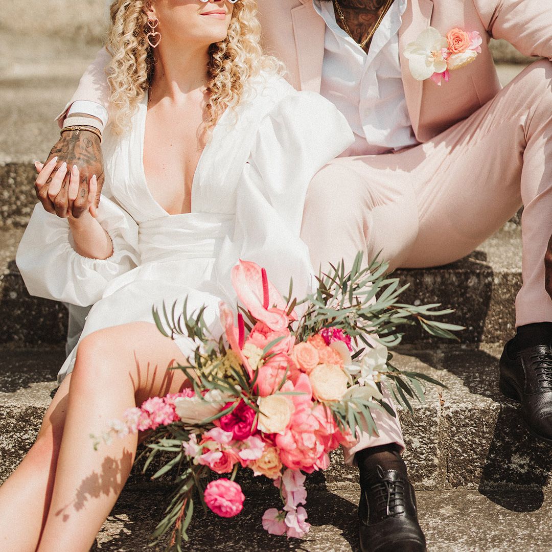 Our inspiration was to create a fashion-styled photoshoot to express that couples can style their wedding the way they want without traditions! We used lots of pinks highlighted in the flowers, shoes, the groom's suit and also the table decor.