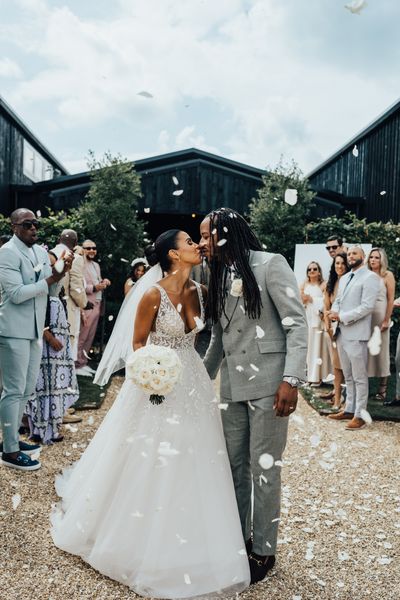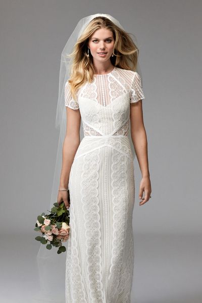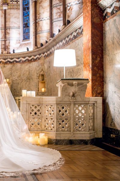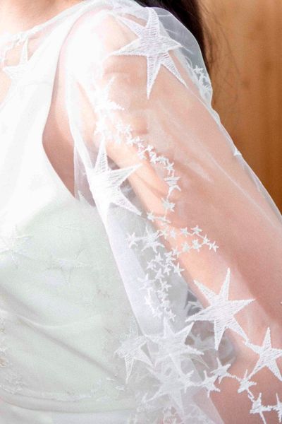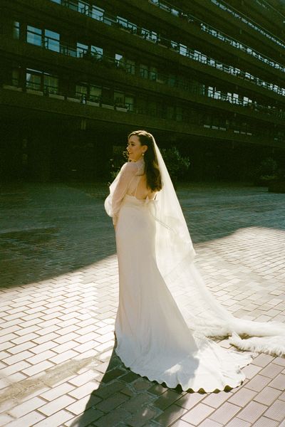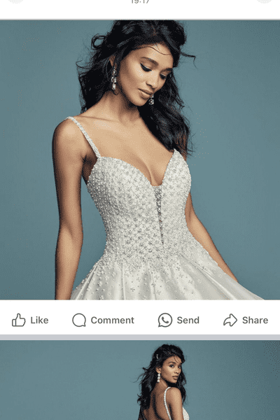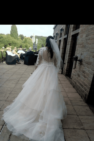 Rebecca Ingram's 2025 Ivory Cinderella Style Wedding Dress with Tear Drop design long veil.