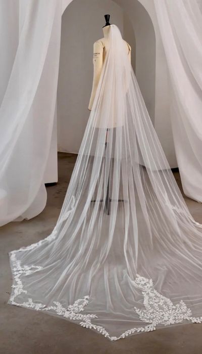 Lotus design by Ria Tener One-layer veil made from premium tulle and hand-embellished with beaded lace Fabric: Premium tulle Length: 282 cm Fastening: Silver metal comb Price: £191.00 - New Never worn apart from trying with the dress but chose something else