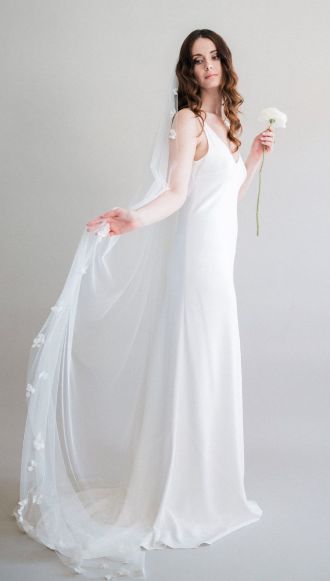 Link to website: https://www.sashandveil.co.uk/product/cathederal-length-petal-veil-esme/ Brand new with tags - never worn due to using an alternative Current rrp: £325 Chapel length 86 inches Light ivory Silver comb Petal embellishments