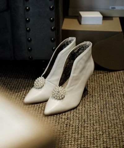 Kitten heel cream pointed wedding shoes boots Fully lined, very comfortable With inner soles Little scuffed on heels but in really good condition There are marks on the front of the boots but it's advisable to purchase clips to clip to the front of the boots. As in the first picture.