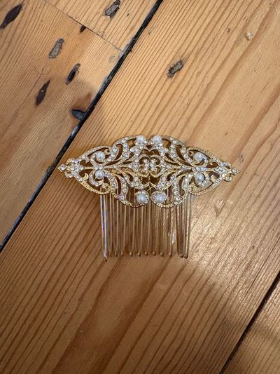 Victorian-style gold & pearl bridal hair comb. Worn once for 4 hours on my wedding day. Timeless vintage-inspired piece that adds an elegant, romantic touch to any bridal hairstyle. Excellent condition.