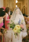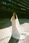 Worn at my wedding, beautiful ruffle veil. Colour: Ivory. Length: Chapel. Has been in storage for 2 years and is wrinkled, so it will require a steam before being worn once more. Otherwise, in very good condition.