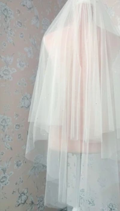 Beautiful 72" two-tier ivory Italian tulle wedding veil scattered with small diamante, which attaches to your hair with the veil comb. Wore it for my wedding ceremony and complemented my Berta strapless dress beautifully. It's as good as new and just needs to be steamed.