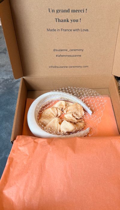 A beautiful ivory Alice band with birdcage from Suzanne Ceremony, which has never been worn. Bought to wear instead of a veil, but decided to go with a veil on the day.