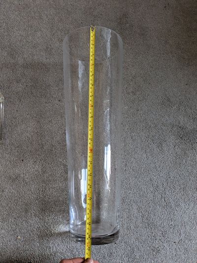 Six glass vases of various sizes: 1) 44cm tall 2) 25cm tall 3) 17cm tall 4) 50cm tall 5) 40cm tall 6) 35cm tall Collection from the Edinburgh area. Can deliver around Edinburgh or Midlothian.