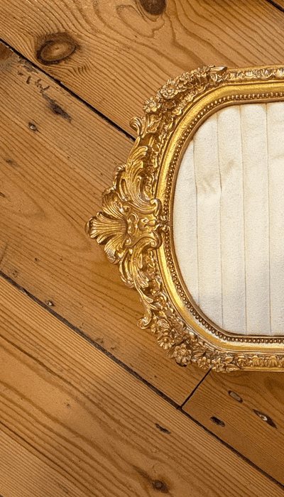 Gold ornate jewelry display (£55) & antique-style hand mirror (£45). Display has a small dent from travel (hidden once jewelry is on it). Perfect for wedding flat-lays, bridal prep photos, or as a vintage vanity set. Selling both together.