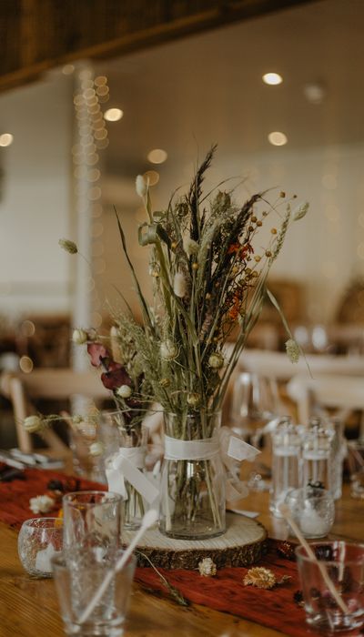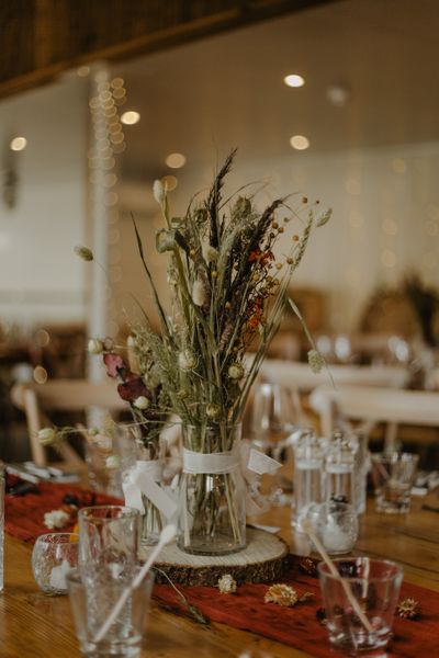 Full set of wedding flowers, including 9 large vases, 14 medium vases, 14 small vases, head table arrangement, and 3 bouquets. Just used for our autumnal wedding, but perfect for any time of year. On trend burnt orange/terracotta colours.
