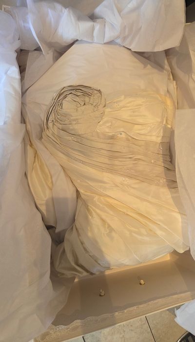 Worn once and then professionally cleaned and boxed in a cider free tissue this Ian Stuart classic dress has only had minor alterations to the length (by a few cm's) it cost £1200 back in 2012. No marks or damage perfect condition