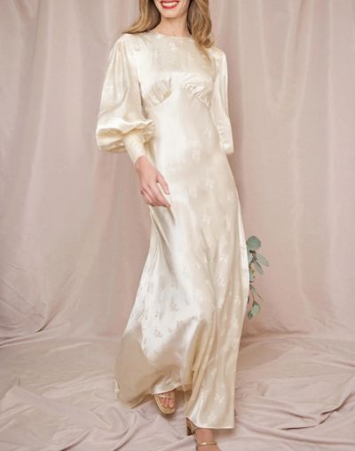 The listing from the Rixo website is as follows: The Clementine is a rosebud-pattern jacquard silk gown with a 1930s vintage-inspired silhouette. Her blouson sleeves, empire waistline, and closed back with covered buttons finish a romantic look. • Pure silk with a rosebud jacquard pattern • Rounded neckline • Slightly dropped shoulders with shirring beneath • Blouson sleeves • Barrel cuffs with covered buttons • Empire waistline • Covered buttons through the centre back • Fully lined • Bias-cut, hangs loosely along the body's lines and moves fluidly • Train I bought this dress on here for my wedding but unfortunately, it doesn’t suit me so I am selling it. The person I bought it from said she only wore it for 3 hours as she had multiple dresses. She had it dry-cleaned before sending and I have only worn it to try it on. There are a few small marks on it that did not come out from dry cleaning as they didn’t want to use harsh chemicals however they are unnoticeable. I have used the photos from the original website as I don’t have any pictures of me wearing it. Link to dress: https://rixolondon.com/products/clementine-rose-bud-silk-jacquard