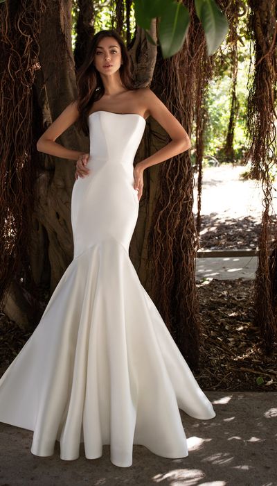 PRONOVIAS wedding dress. Purchased at a sample sale, was £1500 full price. Strapless mermaid dress in mikado with form flattering seems and floor length buttons on back. Only a few buttons need to be repaired. I brought for my wedding, later cancelling my wedding because I had an Indian wedding only