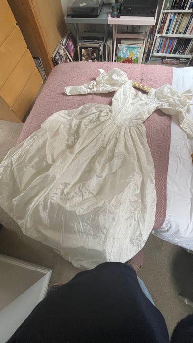 1980s ‘Princess Diana’ style - leg of mutton sleeves, full skirt, Berkertex size 12, 100% polyester. Very pretty beading.