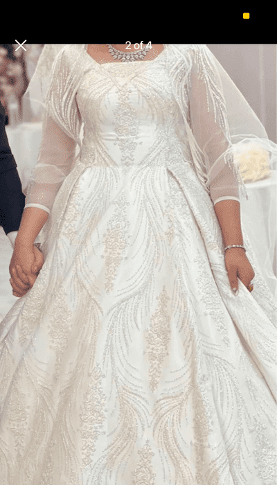 Wedding dress, comes with veil Only worn once - like brand new Medium Size No scammers please From Saudi Arabia Delivery is available on payment Please DM for price
