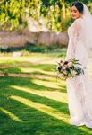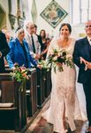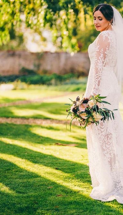 Jesus Peiro made to measure lace wedding dress, size 10-12. Fitted bust cups Long sleeves, v neck line Sheer lace back with beautiful button detailing Underskirt to the knee with lace overlay, A-line style - long train with wrist loop to gather it up for evening dancing Veil included
