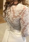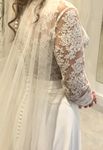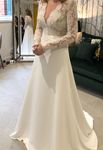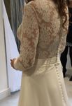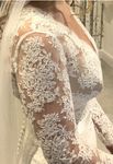 This Suzanne Neville Lace Wedding Dress in size 12 features a V-neckline and intricate lace detailing in an A-line silhouette. The dress exudes a princess-like look, perfect for a bride wanting a classic and elegant choice. Made in the United Kingdom, it showcases the designer's attention to detail