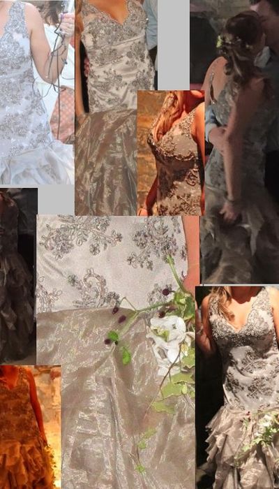 A beautiful vintage EJH silver‑grey beaded gown, UK 12. Intricate embellishment, deep V‑neckline, and dramatic ruffled skirt. Purchased in 2015 as a sample for £800 (RRP £1,800). Worn once. Unaltered, not dry-cleaned, priced accordingly. Timeless, romantic style. Open to sensible offers.