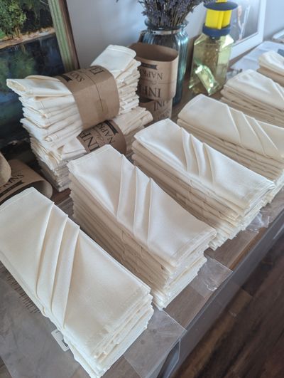 Used, but in good condition Washed (but will need ironing) Originally bought from Amazon: https://www.amazon.co.uk/Solid-Cotton-Blended-Dinner-Napkins/dp/B0C4X82MS7/ref=asc_df_B0C4X82MS7?mcid=5460570bd05633d0a7df52b79972285c&hvocijid=6240040714012705392-B0C4X82MS7-&hvexpln=74&tag=googshopuk-21&lin