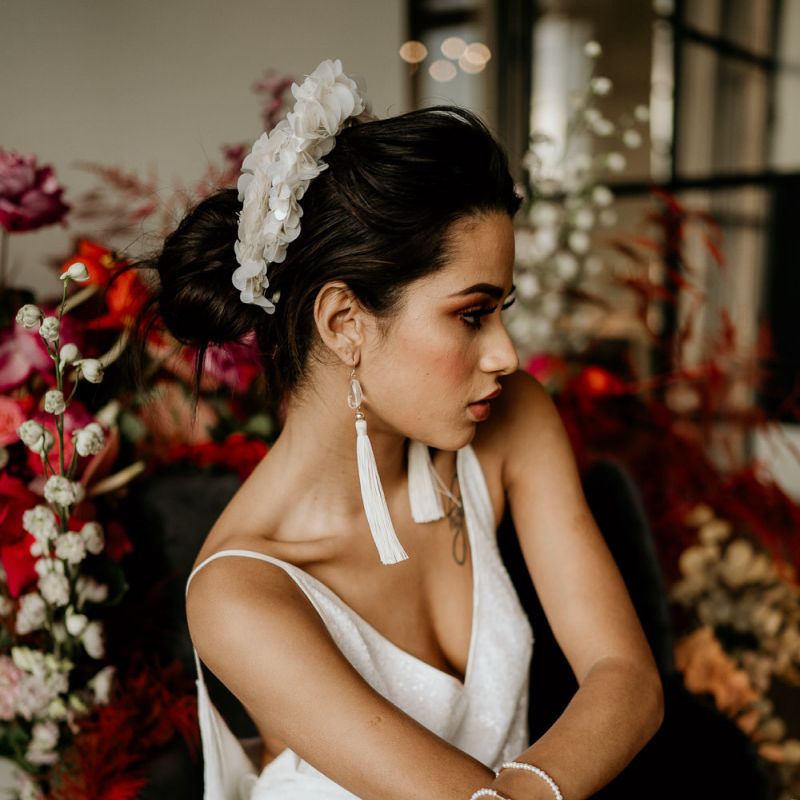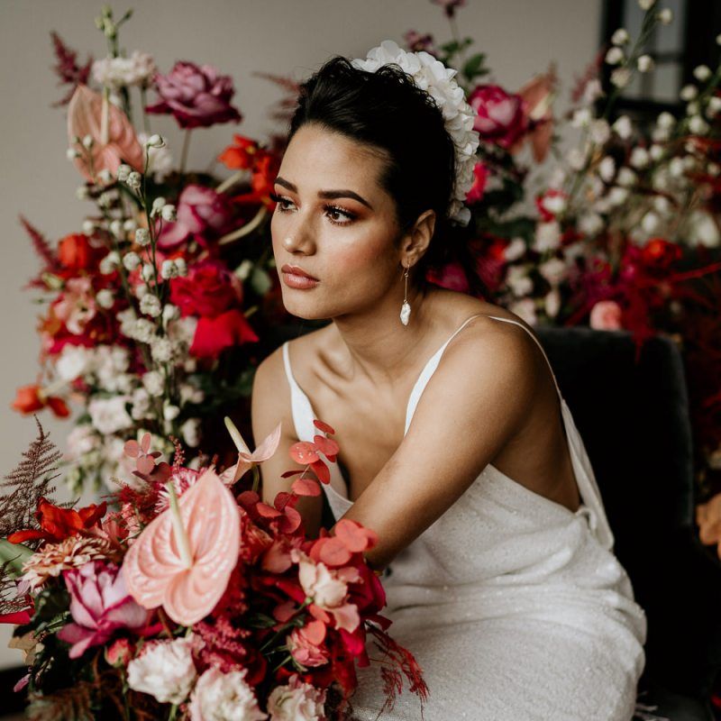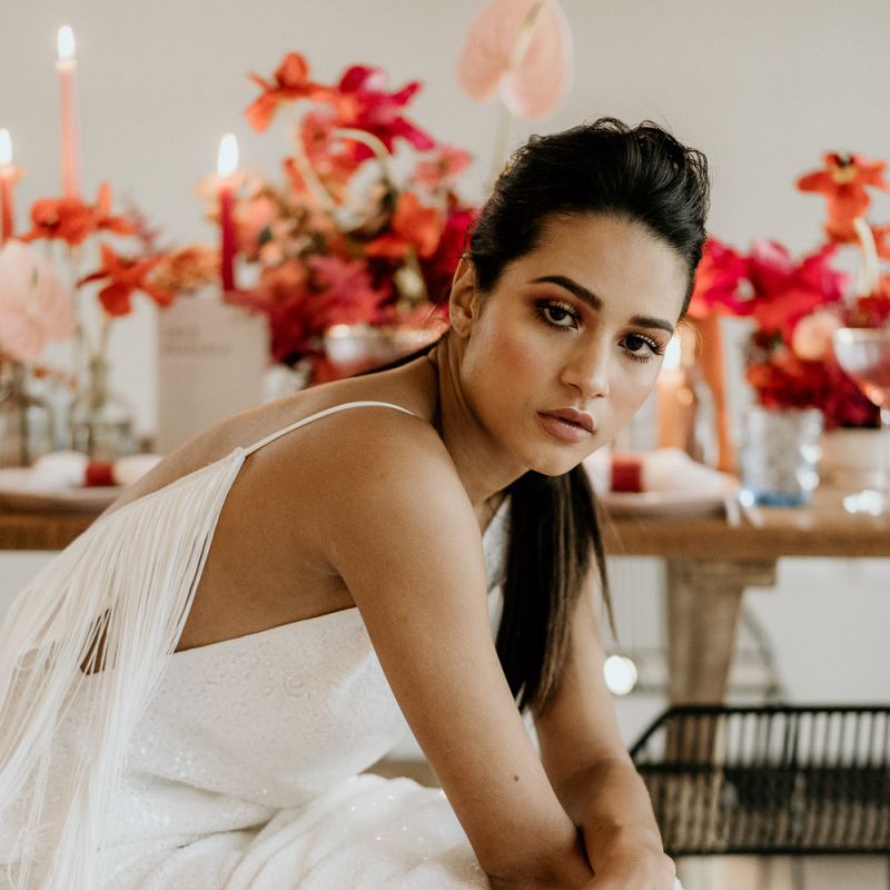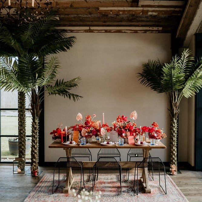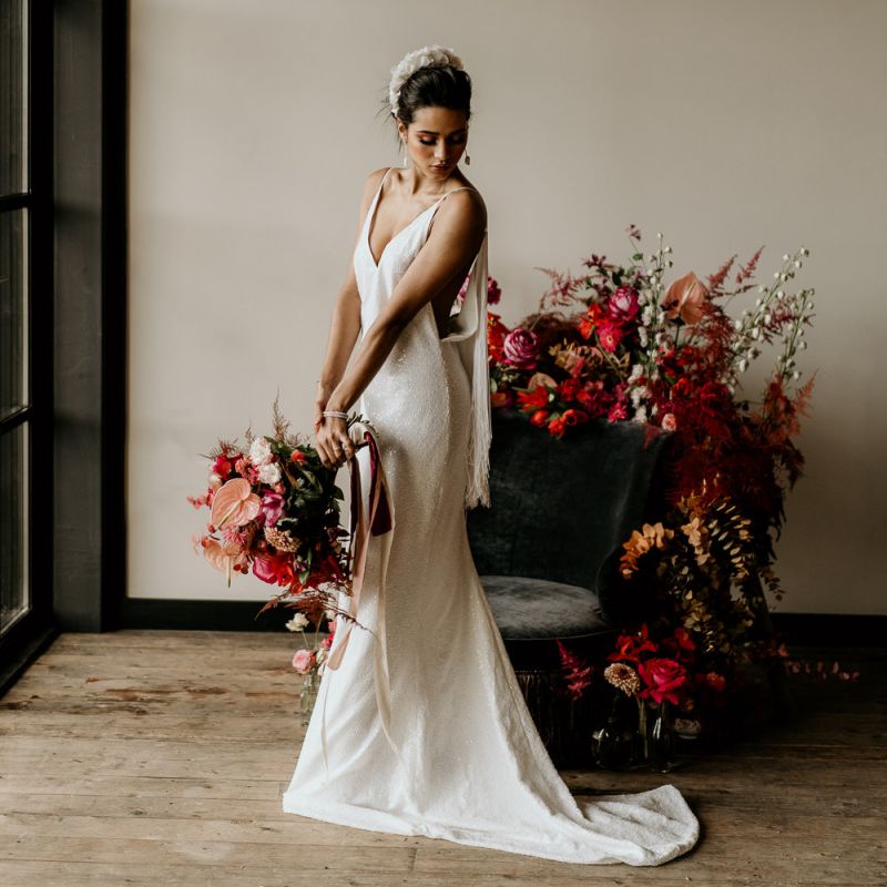 This shoot is like none other, as it wasn’t rooted in a Pinterest board but it actually came together purely as a celebration of each and every team member’s talents. We wanted to create inspirational imagery for the modern, style-conscious couple. Combining Botley Hill Barn's fresh, innovative take on the "wedding barn" with its clean lines and luxe floor-to-ceiling windows with a modern city vibe, statement florals and sleek wedding attire.
