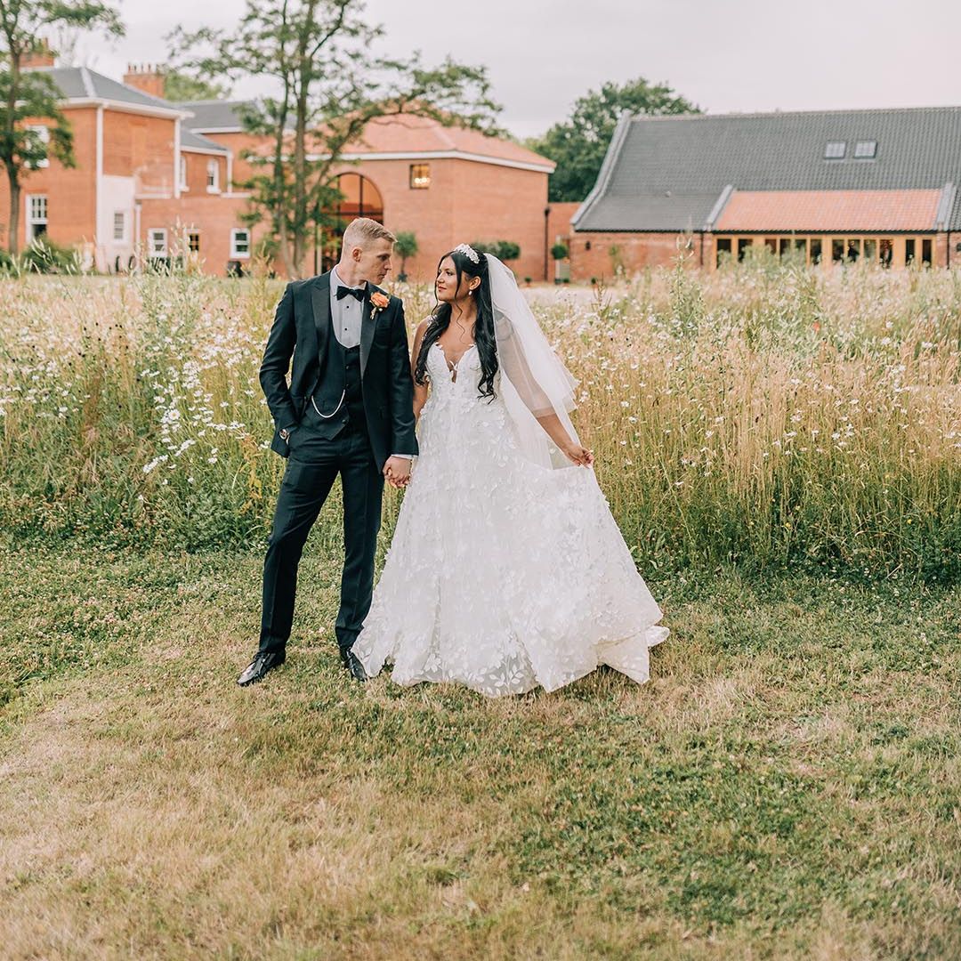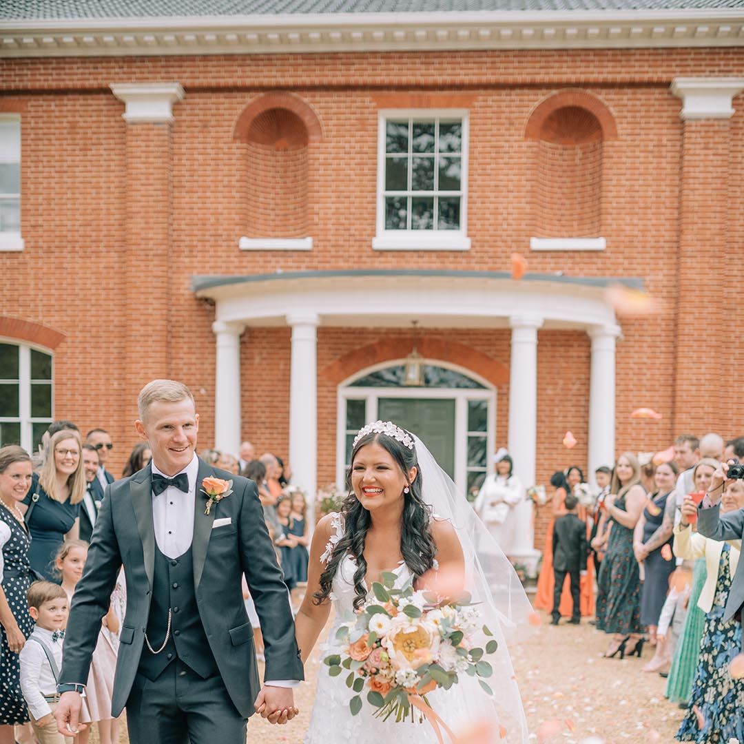Leah & Josh's vibe for their Reymerston Hall wedding was timeless, romantic, and fun! The colour palette of the day was mostly pastels with pops of colour and gold details. The flowers and bridesmaid dresses added that bright coral colour for the day. Leah & Josh just wanted to have a fun and relaxed atmosphere for their friends and family whilst making elegance and luxury. That was the magic of Reymerston Hall wedding venue, it was grand but it still felt intimate and private! Reymerston Hall is definitely a unique place. Josh's dad was the architect of the building, so it was meant to be Leah & Josh's wedding venue all along!