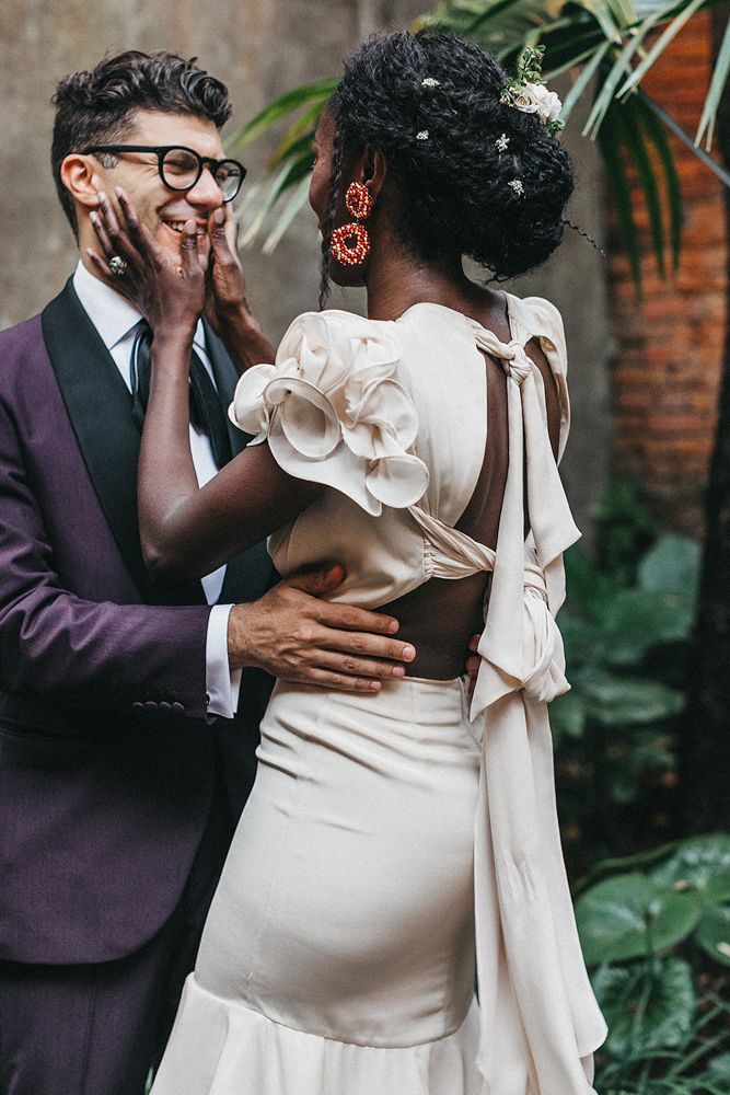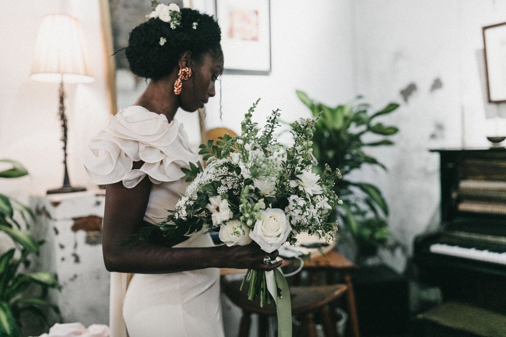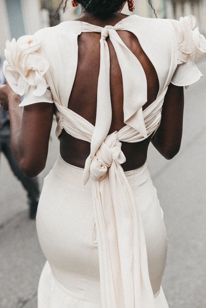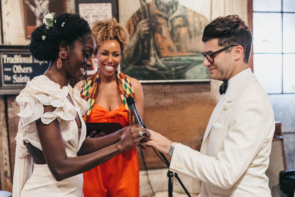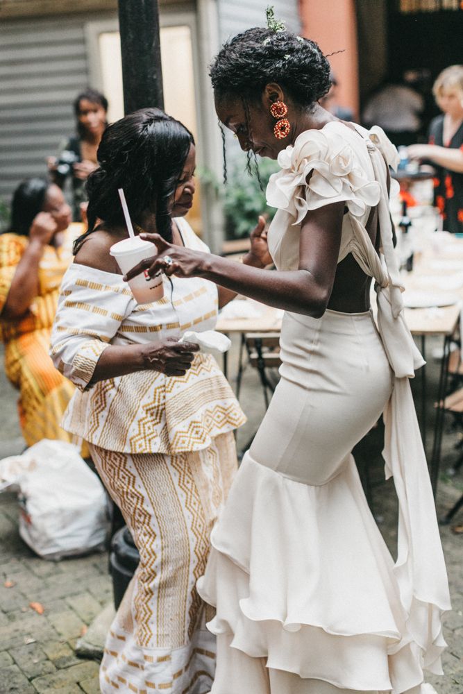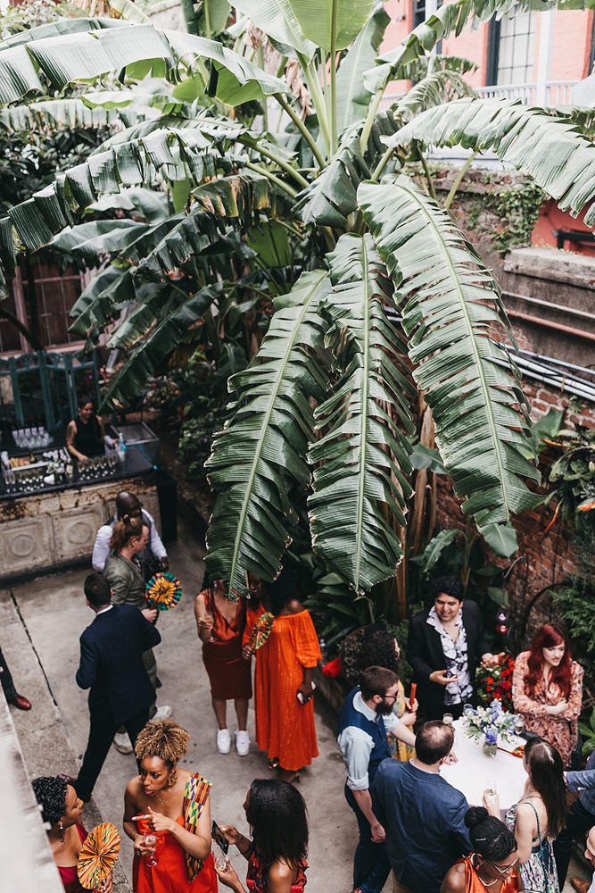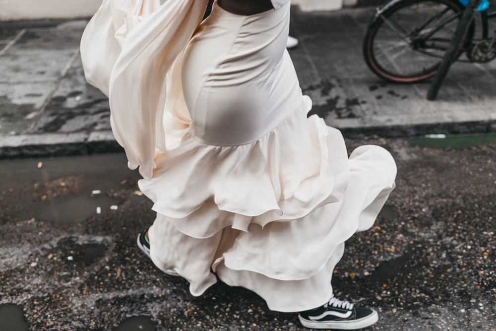 The overall vibe of the day was super chill with wild dancing! We wanted guests to feel comfortable, so there was no strict dress code. We kept the fact that there would be a Second-line procession, a secret from our guests. But I did explain that comfortable footwear was a must. I myself changed out of my wedding shoes and into my Vans trainers, as soon as possible, so I could dance for the entire night. One of my favourite parts of the day was the vow exchange, between Saul and I. It really did feel incredibly intimate. Another moment that springs to mind is our amazing after dinner rain dance. All-day we had been treated to beautiful sunshine, and then as soon as the plates and glassware were cleared away, the heavens opened up. Rather than retreating inside, everyone ran out and the brass band kept playing. We all got soaked dancing in the rain, and I’m not sure I’ve ever been happier.