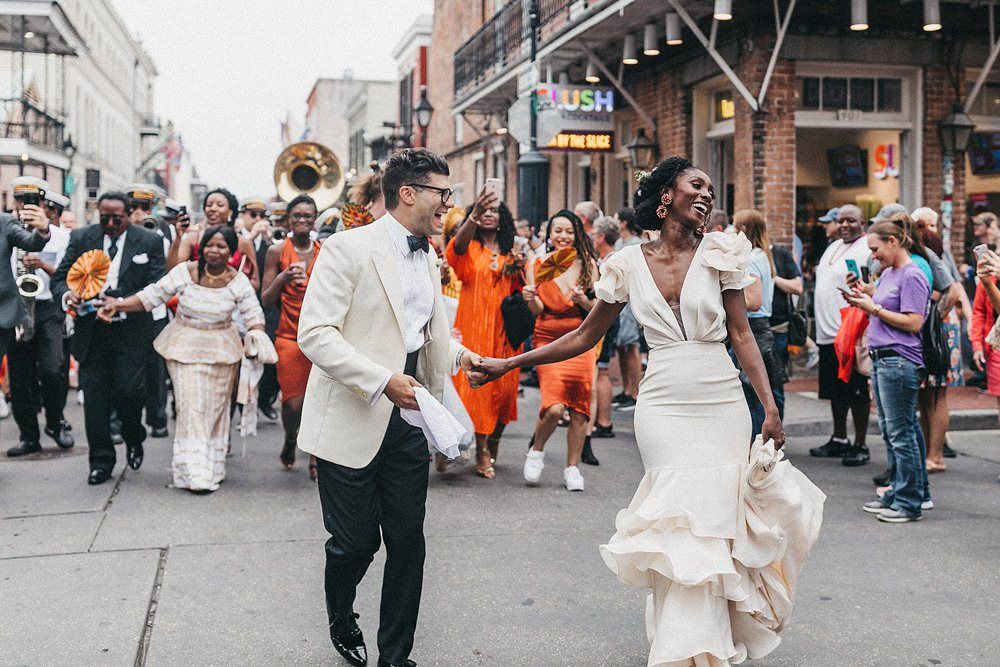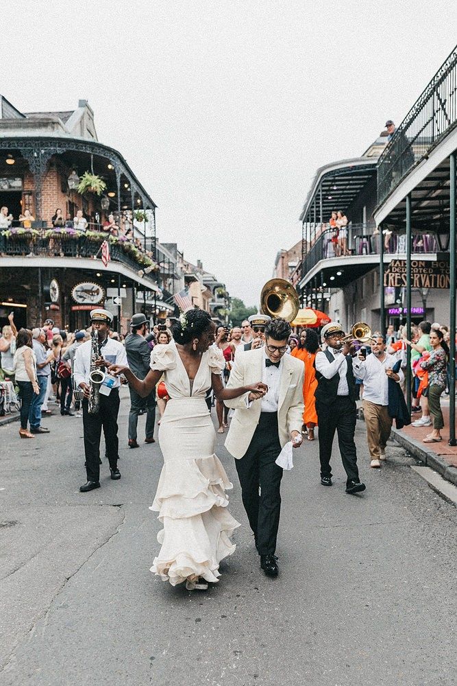 Well firstly we flew from London to New Orleans! Most of our guests had never been there before, but we fell in love with the city when we visited once before. Having a brass band playing us out of our wedding ceremony and onto our wedding ceremony venue, was pretty unique! We found our wedding planner Michelle Norwood, through one of the venues that we were going to book. She came highly recommended. Luckily she was pretty established and knew which suppliers would fit into our budget. We were mostly concerned with beignet cost-efficient but also proving our guests with a typical New Orleans experience. We were particularly adamant about the food being authentic Southern BBQ, which all our guests adored
