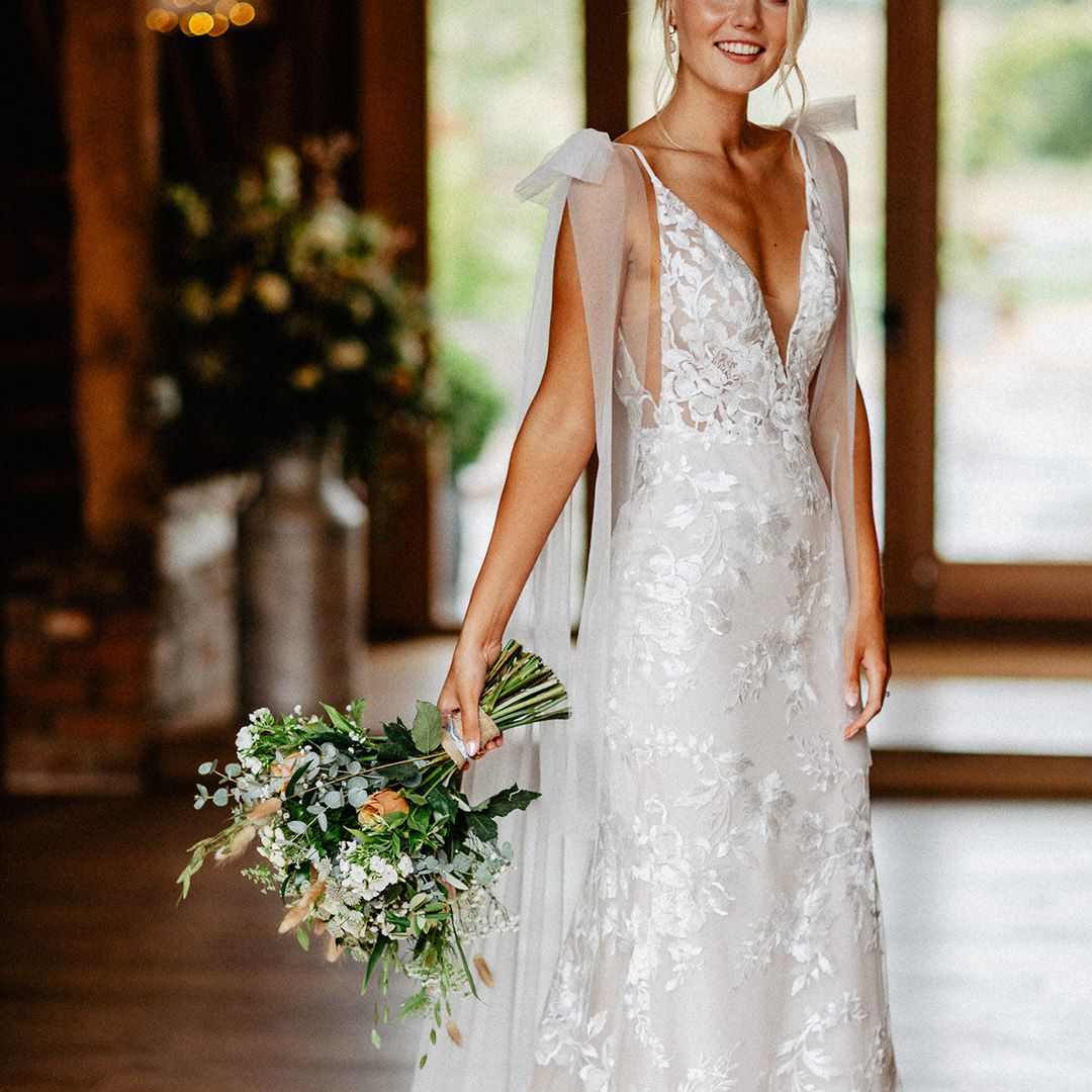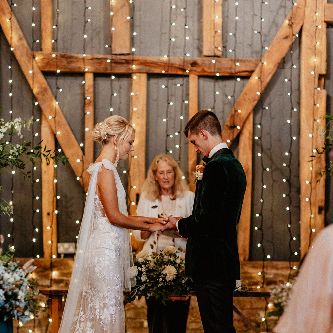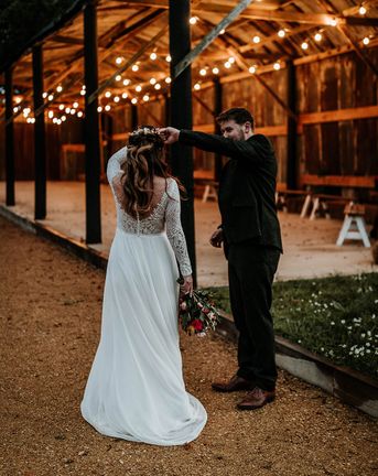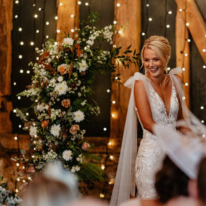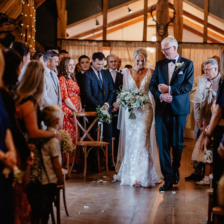Lots of things made Emily & George's day special but the weather was particularly spectacular. The couple had thunder when walking down the aisle and multiple rainbows throughout the afternoon. The photos of Emily & George with umbrellas out in the rain are extra special to the couple. The overall vibe was modern and rustic. Emily & George wanted a barn wedding venue that spoke for itself and didn't need a lot of added decoration. Choosing a Silchester Farm wedding gave the couple just that! With the rustic feel of the Threshing Barn for the ceremony and the modern industrial feel of the Cow Shed for the breakfast and evening party.