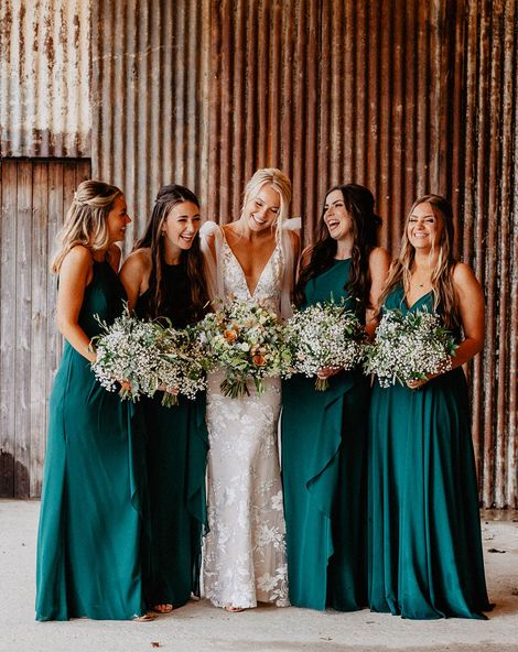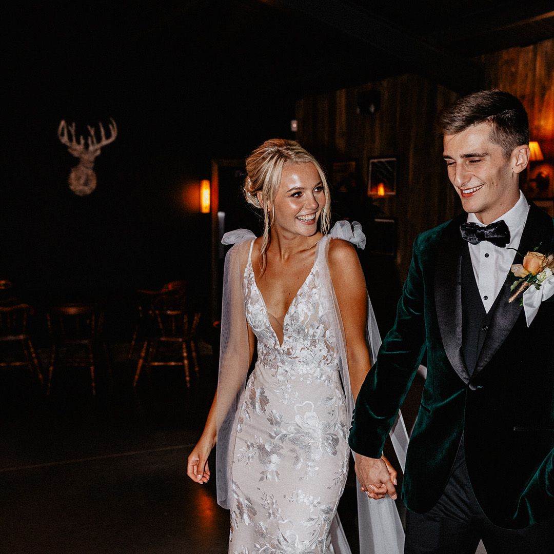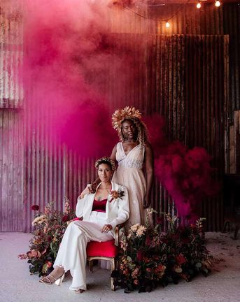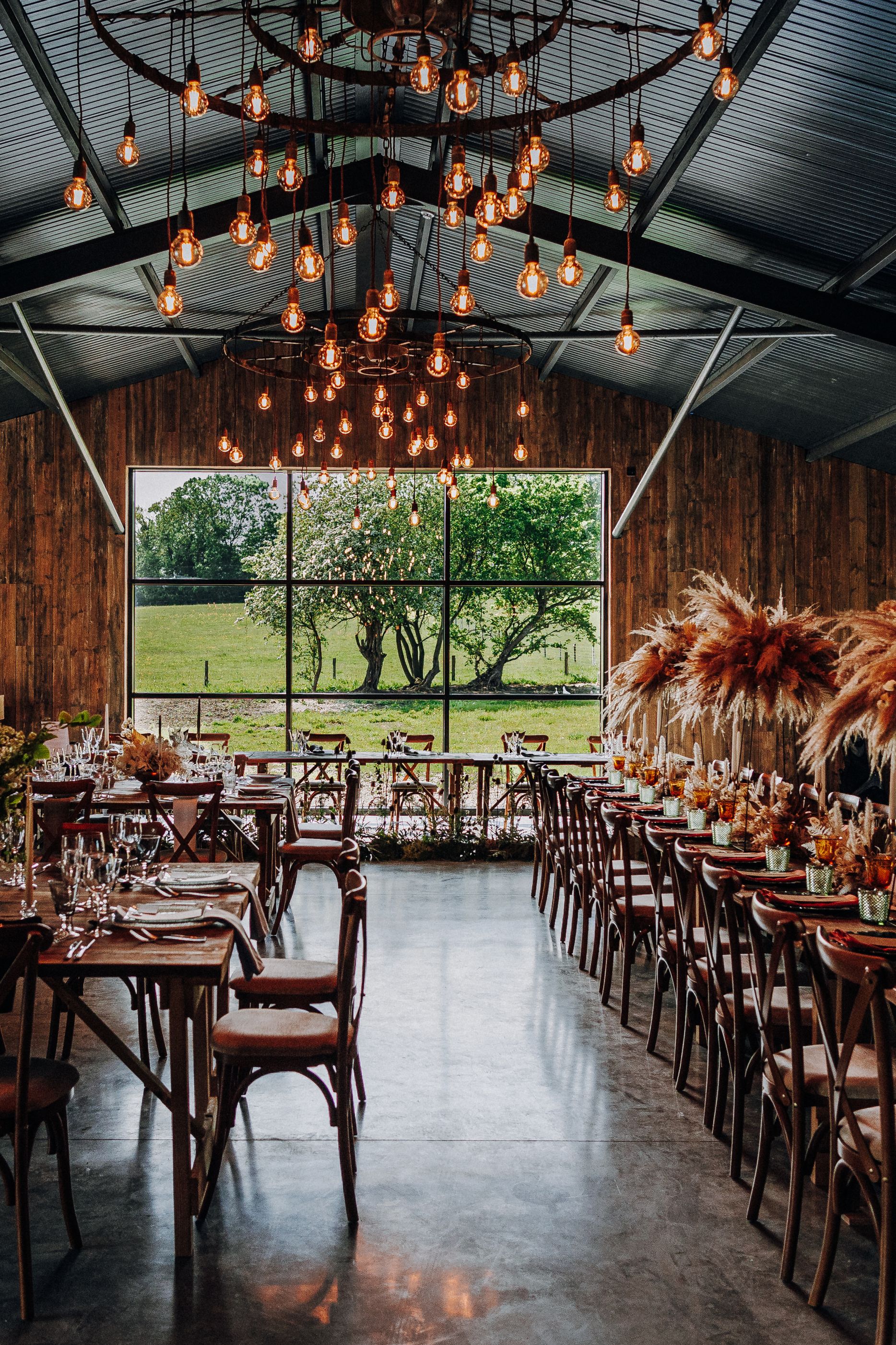 Lots of things made Emily & George's day special but the weather was particularly spectacular. The couple had thunder when walking down the aisle and multiple rainbows throughout the afternoon. The photos of Emily & George with umbrellas out in the rain are extra special to the couple. The overall vibe was modern and rustic. Emily & George wanted a barn wedding venue that spoke for itself and didn't need a lot of added decoration. Choosing a Silchester Farm wedding gave the couple just that! With the rustic feel of the Threshing Barn for the ceremony and the modern industrial feel of the Cow Shed for the breakfast and evening party.