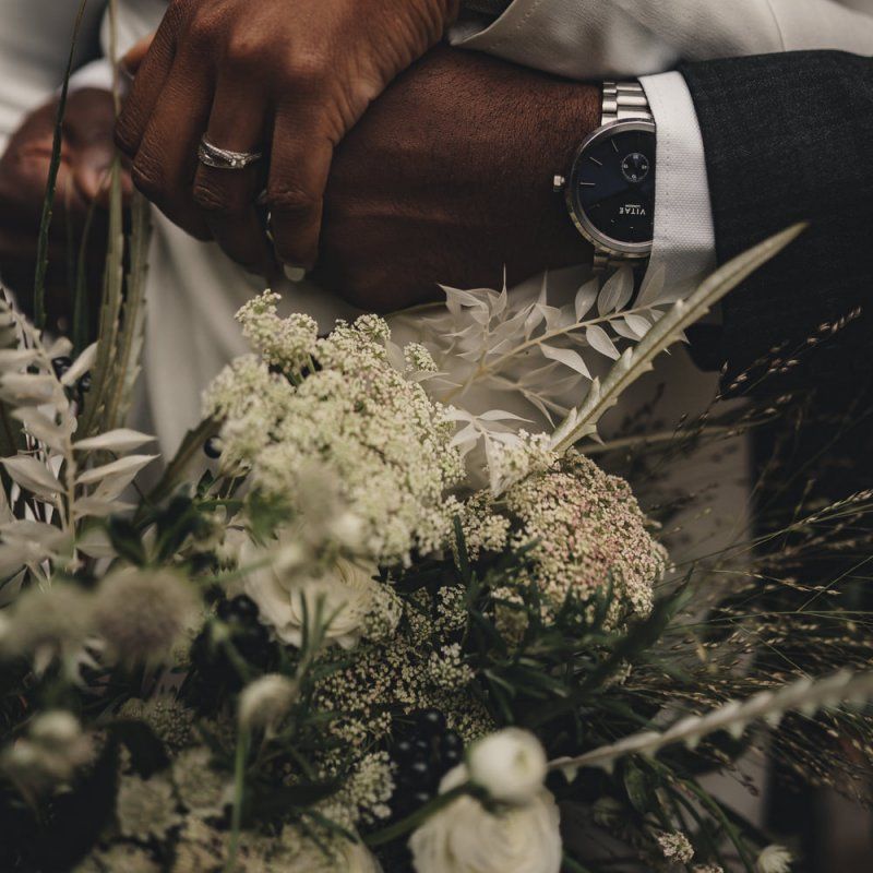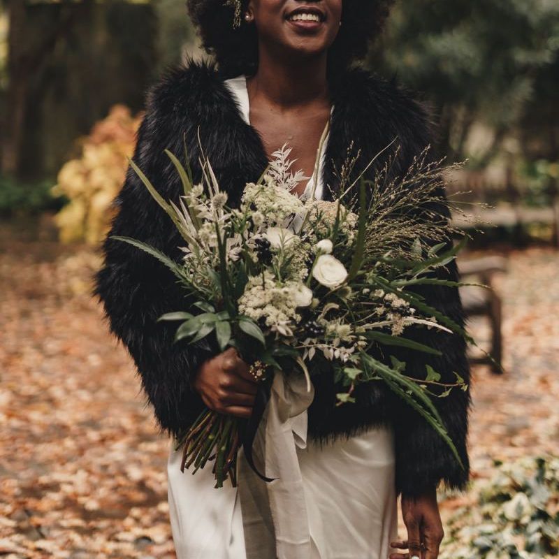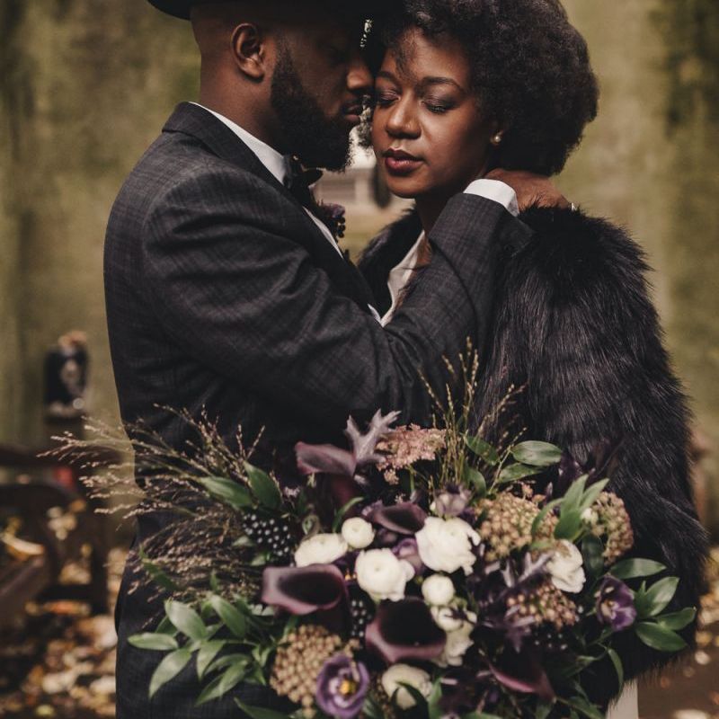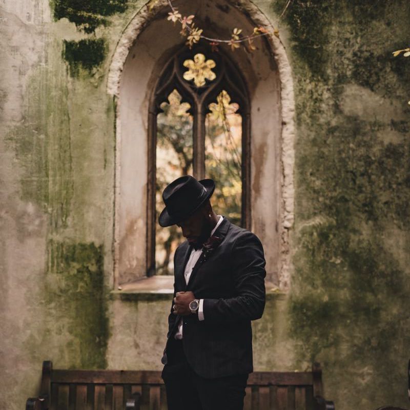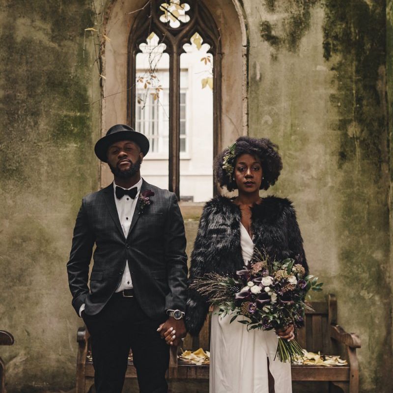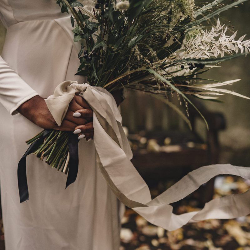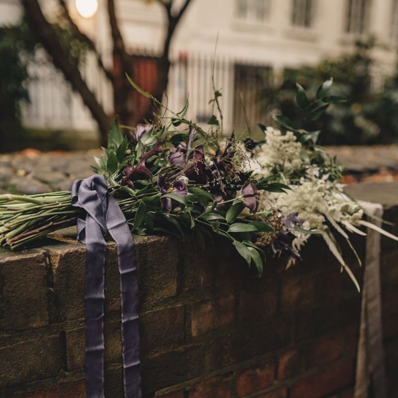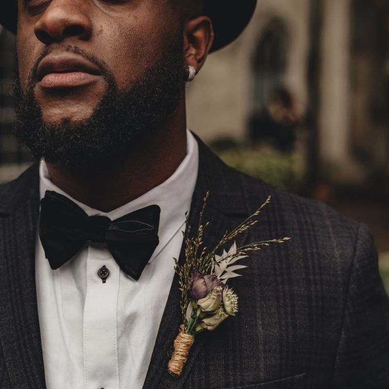 To add to the nature-sque vibe we envisioned, we without a doubt wanted dramatic bouquets and specifically, a floral hair-comb for our beautiful bride. Rachel from House of Dandelions really took on board the theme and provided us with two bouquets, two buttonholes and a hair-comb as examples of what you could with such a moody colour palette. The hair comb was a stunning part of the bridal look and something you don't see a lot of brides wear as much! The mixture of class and floral really brought the shoot to life and was a major highlight.