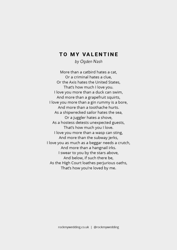 If you fancy a copy of To My Valentine by Ogden Nash then we've got you covered.