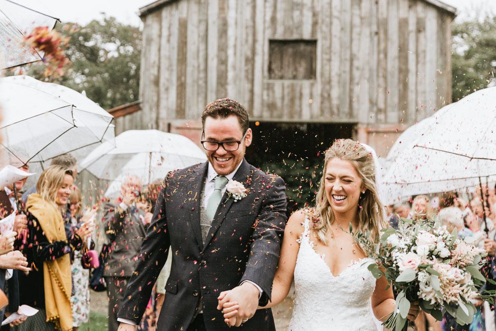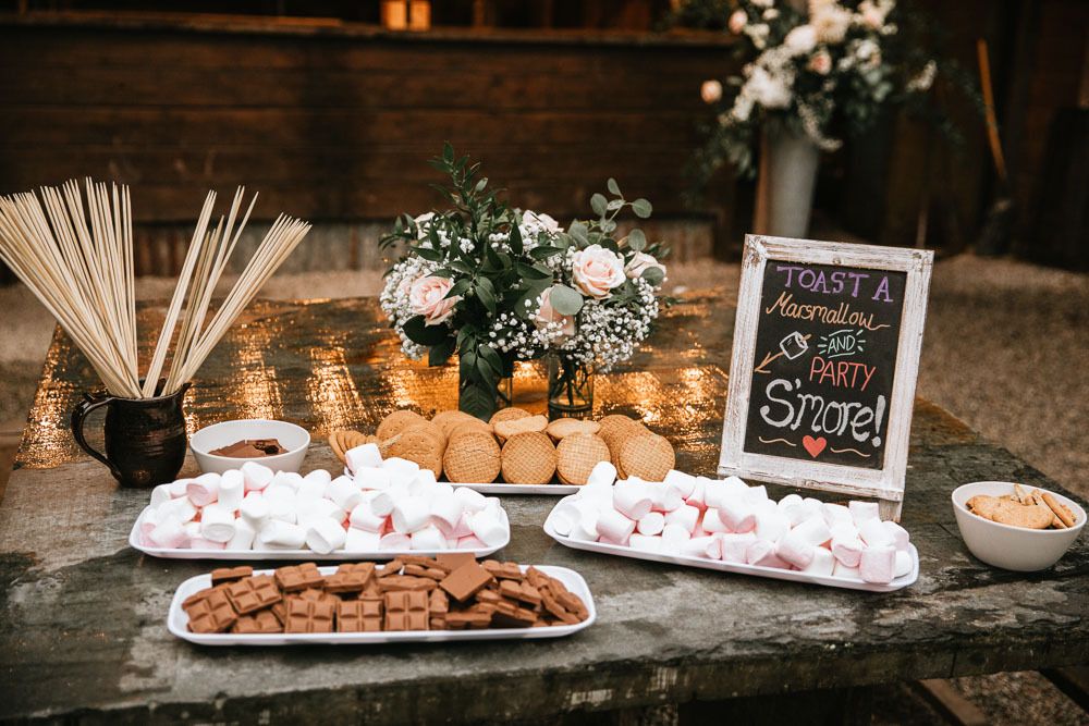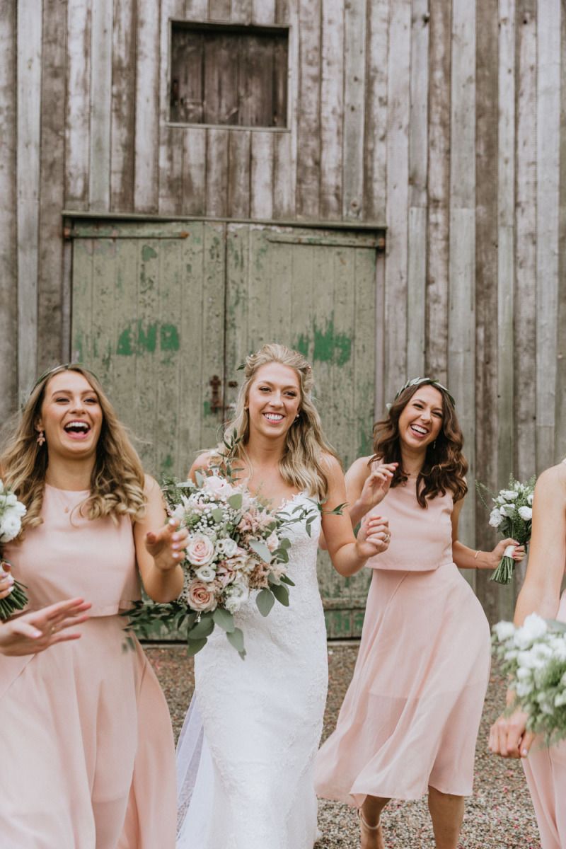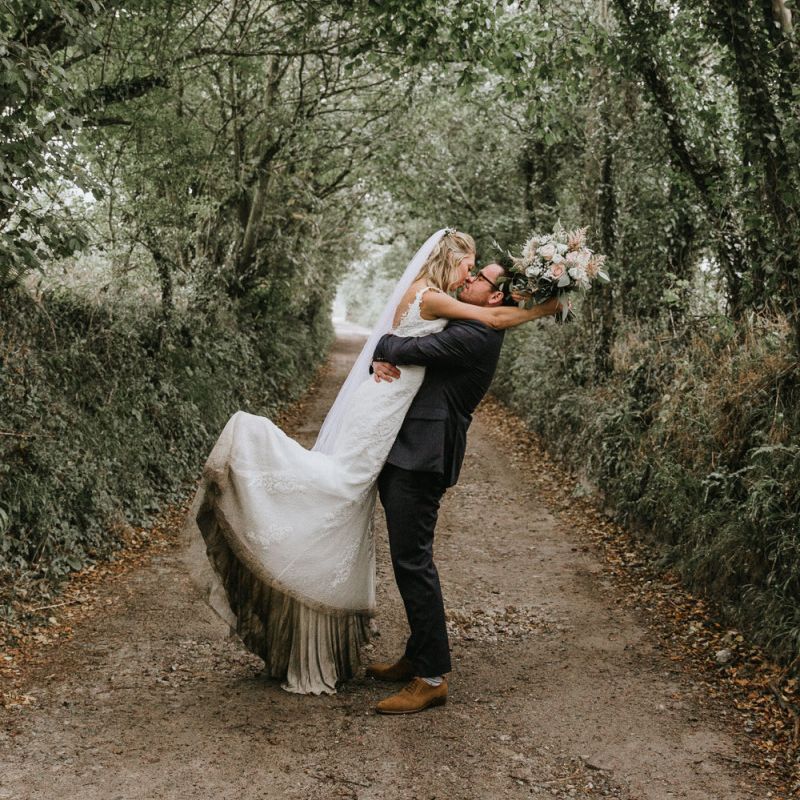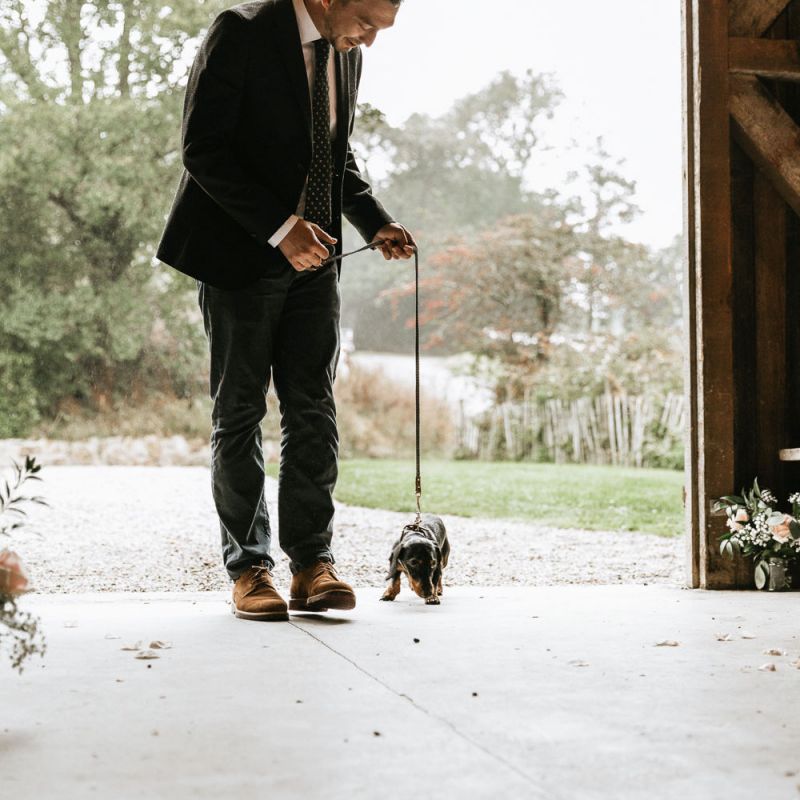We wanted our wedding to be memorable and a bit different so we chose to have our ceremony in the Rusty Barn at Nancarrow Farm which was so natural and earthy but breathtakingly beautiful. It allowed the focus to be on love and the people there to celebrate with us which was so special. We loved that the food and drink was all locally sourced at the farm too. Having our miniature dachshund puppy as the ring bearer was also a highlight! We chose alternative outfits for the bride and grooms' parties and got creative with balloons, sparklers, s'mores, pic n' mix, macarons, bubbles and a handmade flower wall for the extra WOW factor!