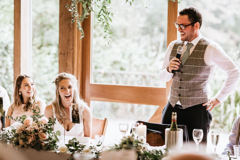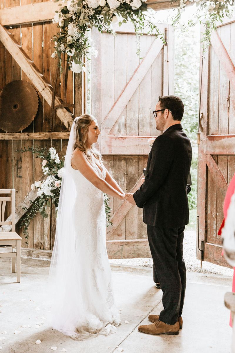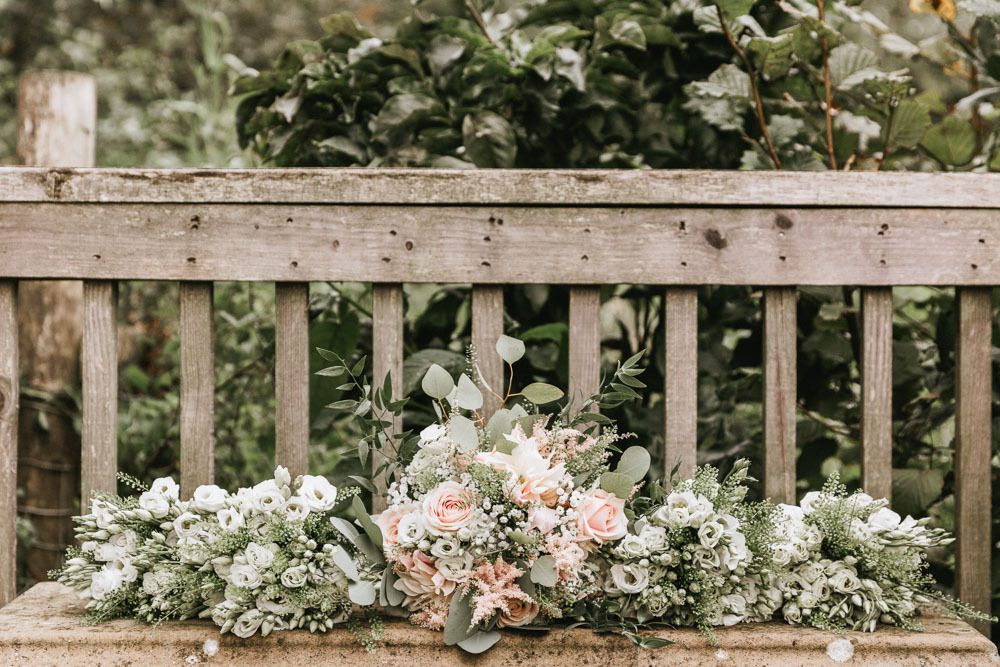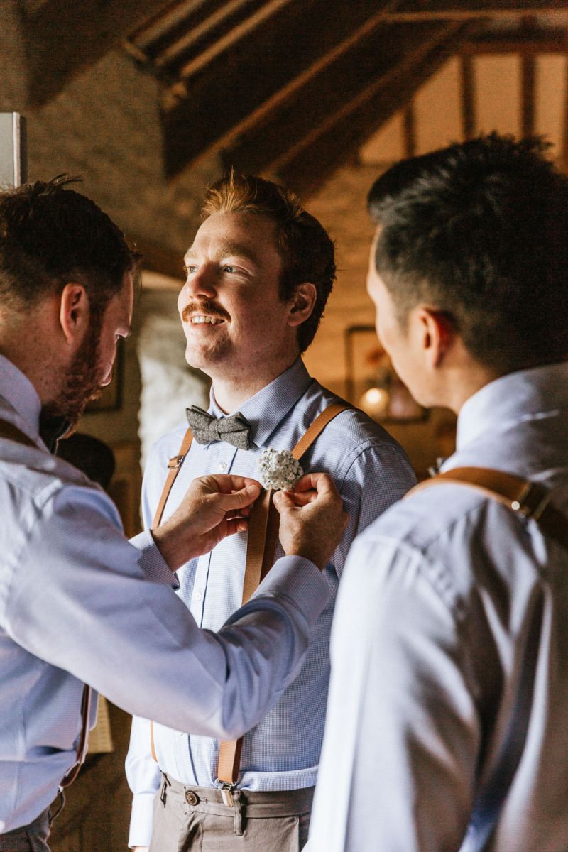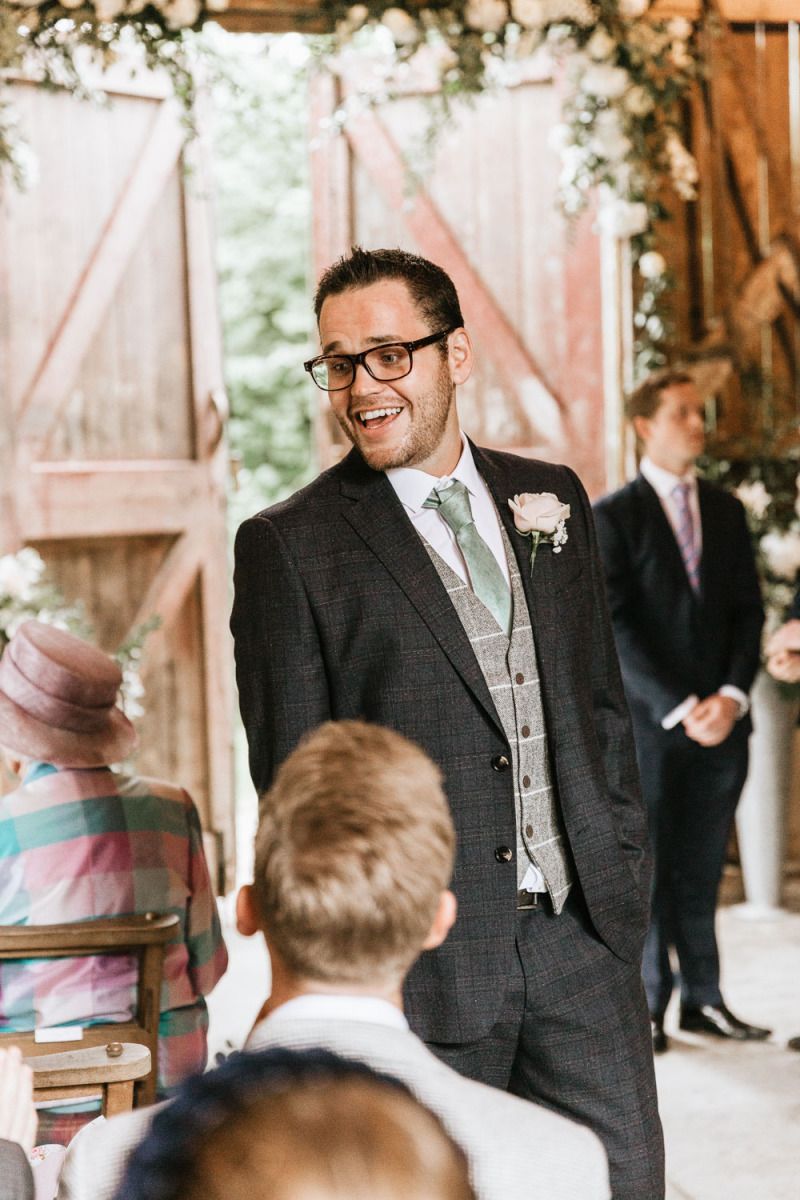We wanted our wedding to be memorable and a bit different so we chose to have our ceremony in the Rusty Barn at Nancarrow Farm which was so natural and earthy but breathtakingly beautiful. It allowed the focus to be on love and the people there to celebrate with us which was so special. We loved that the food and drink was all locally sourced at the farm too. Having our miniature dachshund puppy as the ring bearer was also a highlight! We chose alternative outfits for the bride and grooms' parties and got creative with balloons, sparklers, s'mores, pic n' mix, macarons, bubbles and a handmade flower wall for the extra WOW factor!