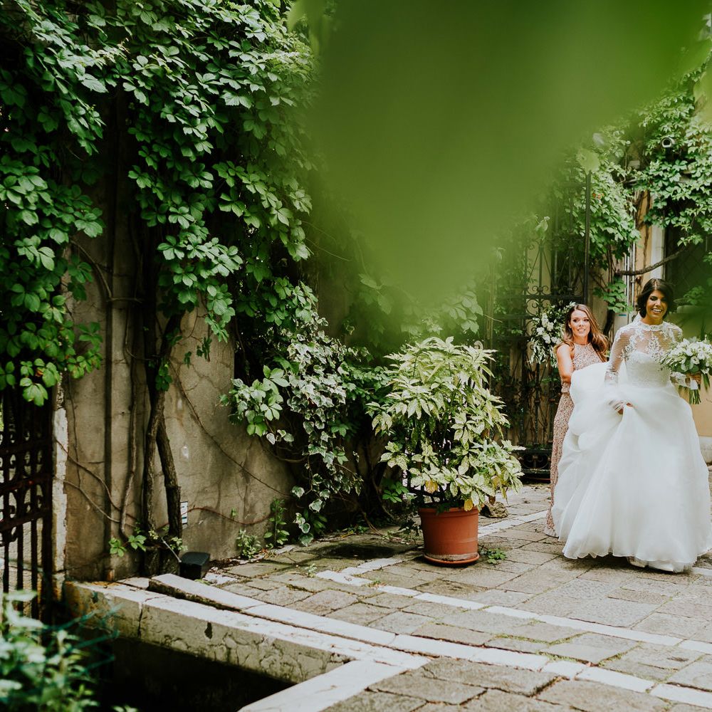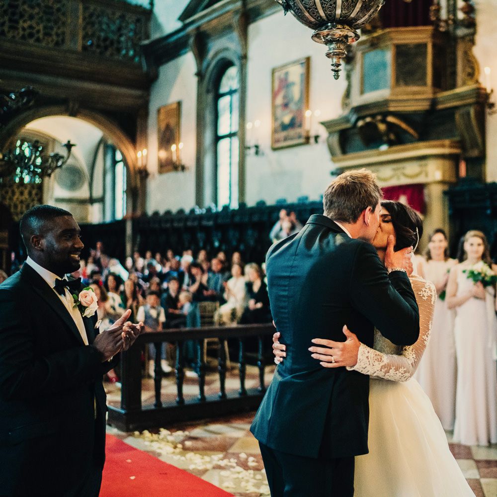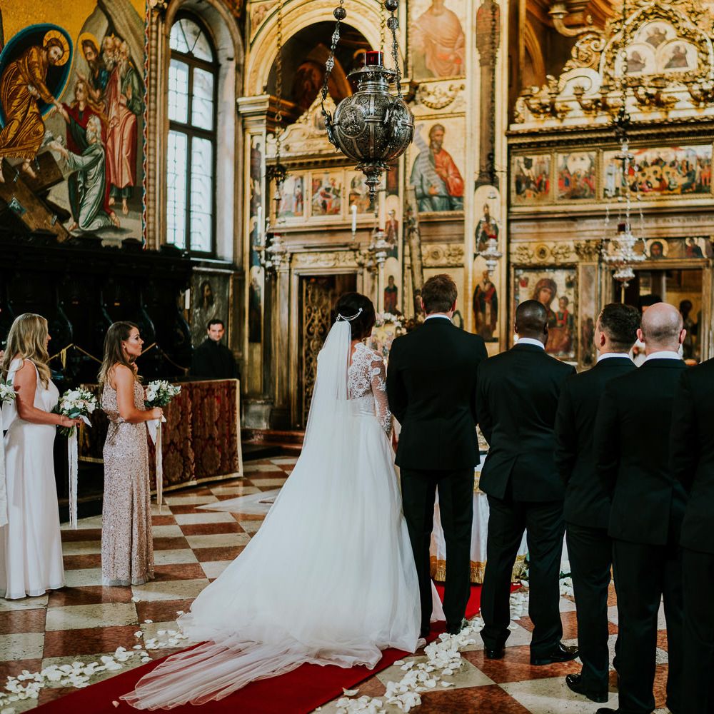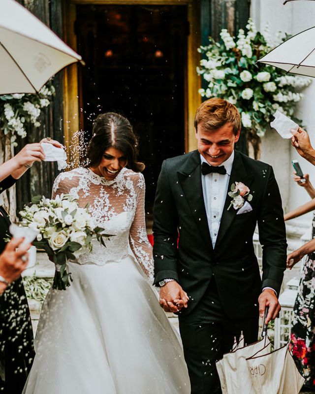 I tried on over 40 dresses in total – as I wanted to make the most of it! I knew I’d found my daytime dress when I saw the look on the faces of my mum and best friend. I felt like I was floating in a bridal bubble as soon as I put it on. My night dress was a showstopper – I felt like it was SO very me, before even seeing it in the mirror. I think a lot of guests expected me to show up to church in something like my Berta dress, so I enjoyed the element of surprise. Both dresses were from The Wedding Club in Knightsbridge.