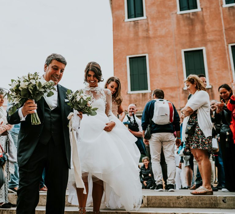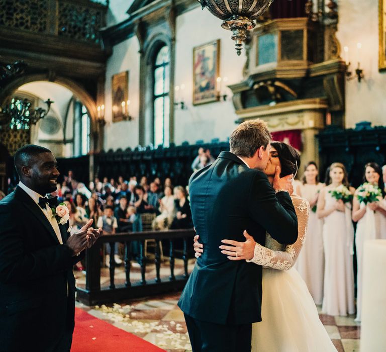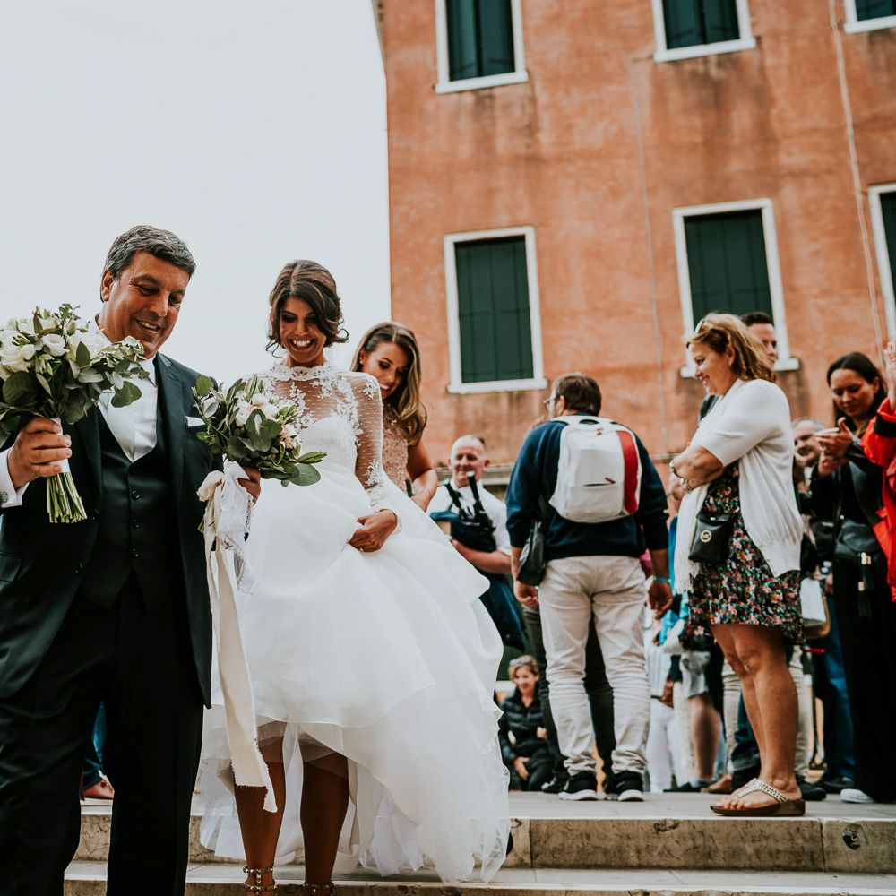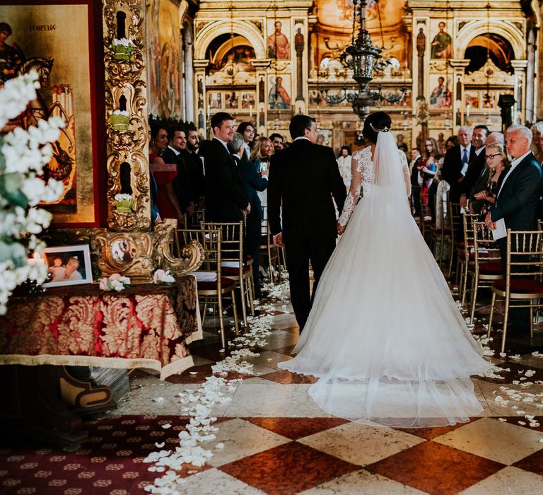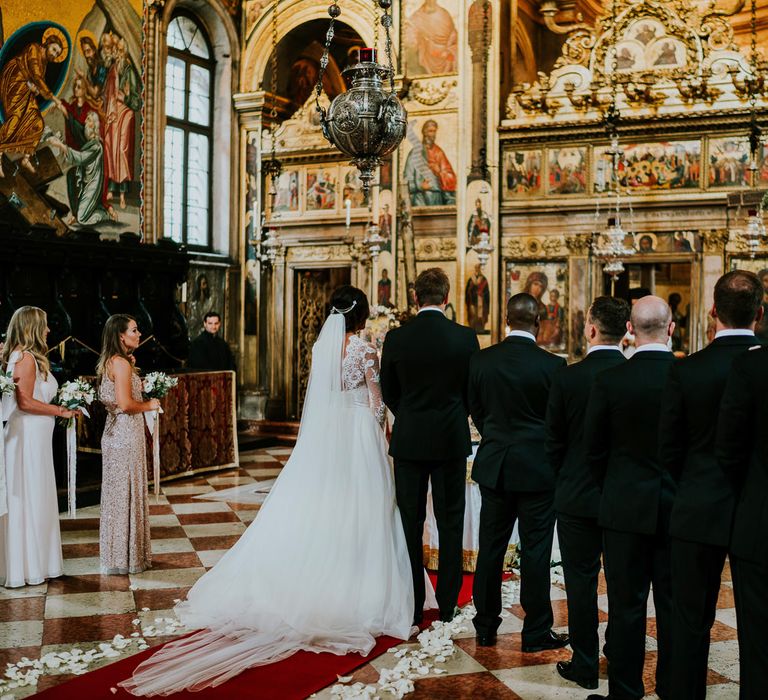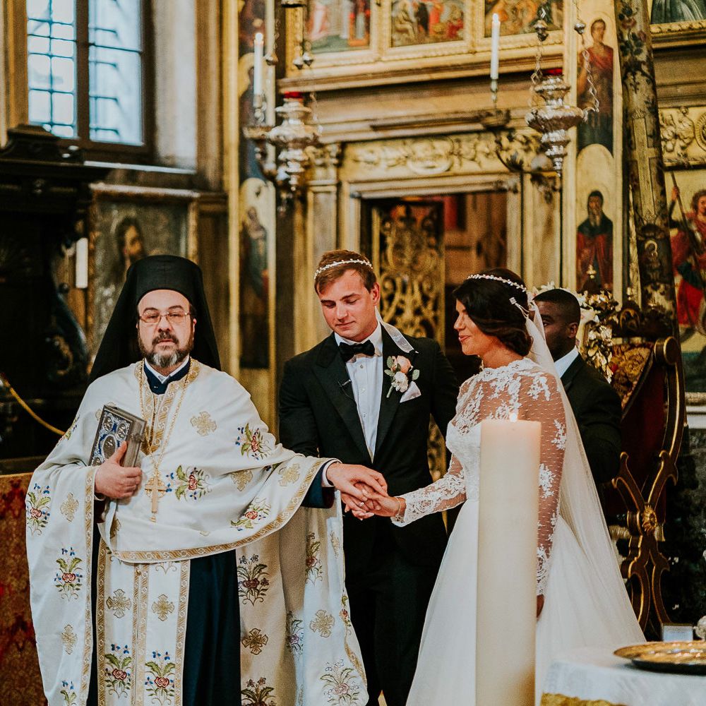 I tried on over 40 dresses in total – as I wanted to make the most of it! I knew I’d found my daytime dress when I saw the look on the faces of my mum and best friend. I felt like I was floating in a bridal bubble as soon as I put it on. My night dress was a showstopper – I felt like it was SO very me, before even seeing it in the mirror. I think a lot of guests expected me to show up to church in something like my Berta dress, so I enjoyed the element of surprise. Both dresses were from The Wedding Club in Knightsbridge.