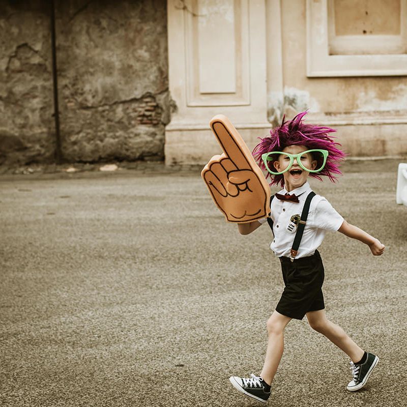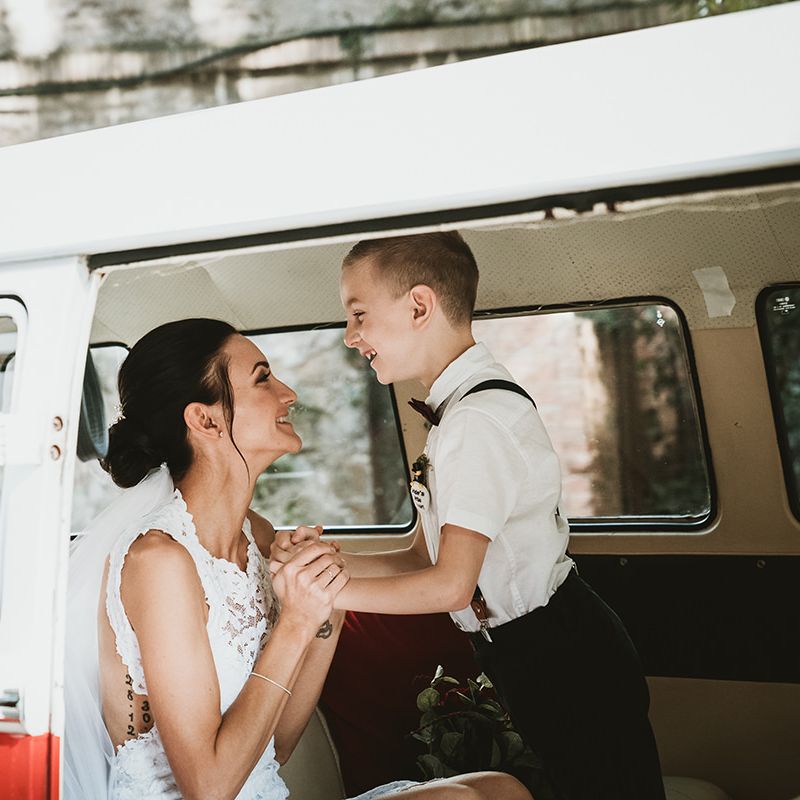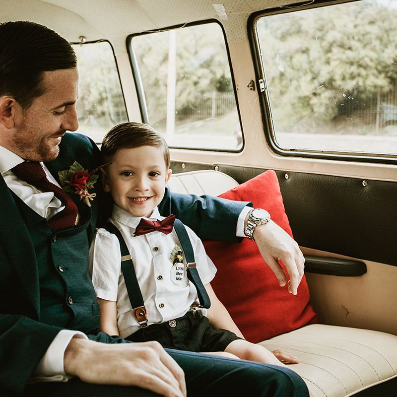 I wanted a chilled, fun vibe for the day which was definitely made. Even the little things like making a stop during photos to go grab a Gelato with the suppliers were just so lovely. Styling-wise I wanted boho and relaxed. Little did we know the camper van we had hired for the day had photo props, whilst my husband and I were having photos, our children had dressed up and surprised us wearing wigs and inflatable props, it made great photos and was absolutely hilarious.