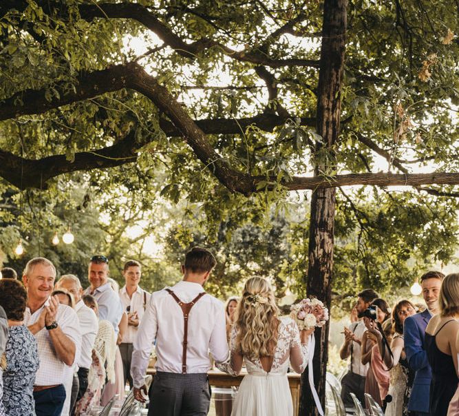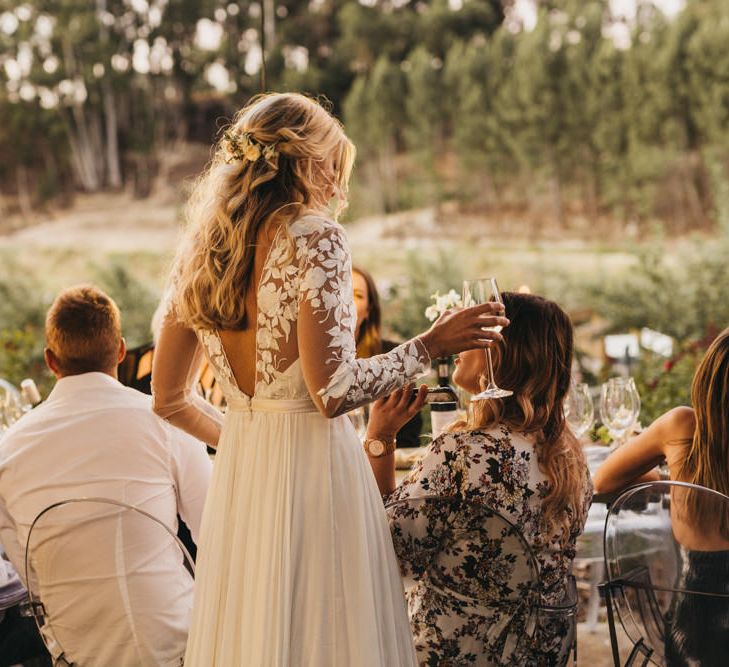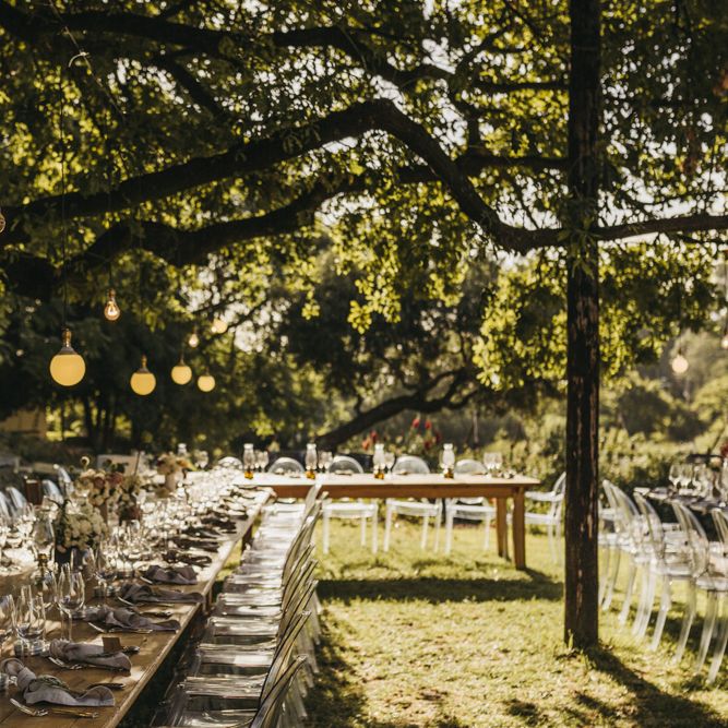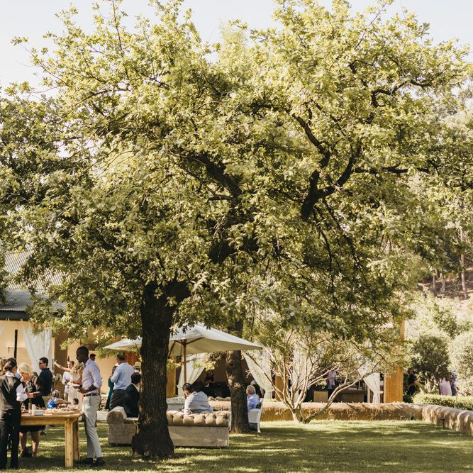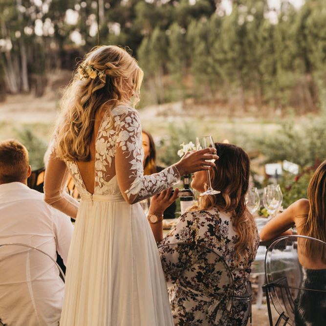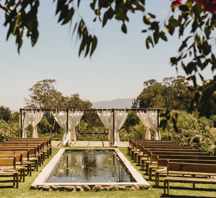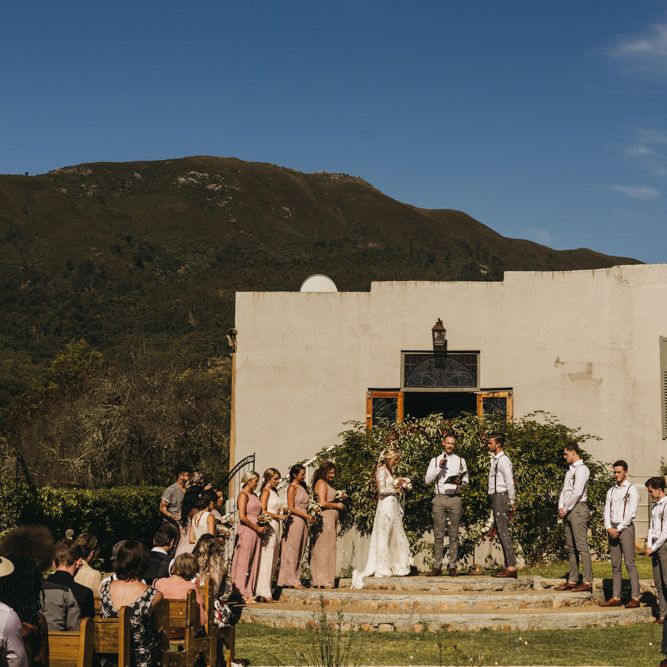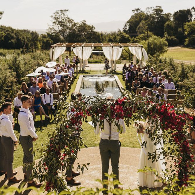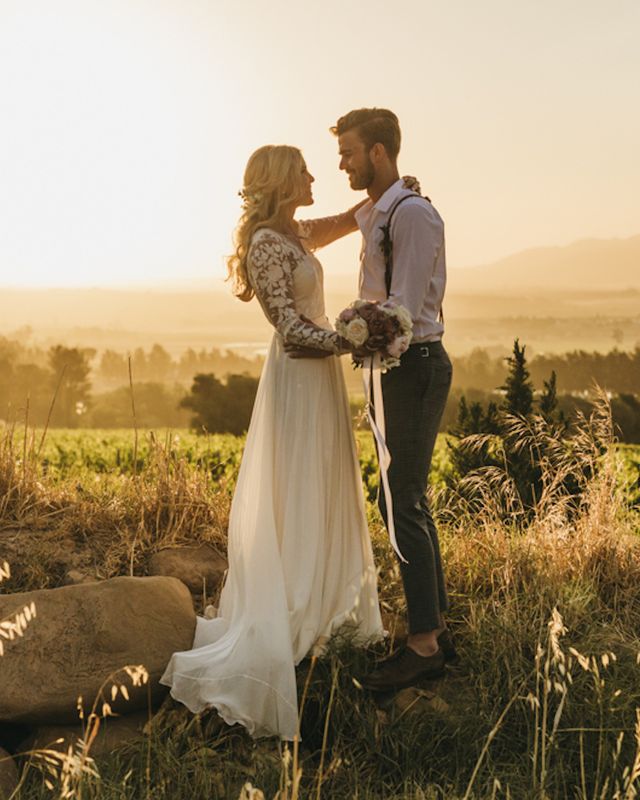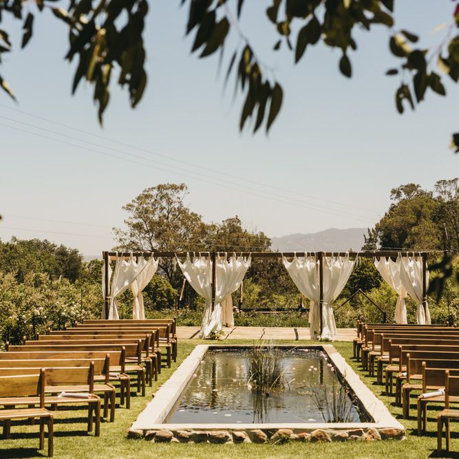 My husband and I were both born in South Africa, and so chose to have a destination wedding, in the middle of the Winelands, just outside of Cape Town.We got married on a stunning rose farm, and our entire wedding took place outdoors. Luckily we were blessed with amazing weather. Our day was unique in that we had to plan our entire wedding from the UK, and we only saw our venue three days before we got married! Planning the wedding from the UK meant that we had no menu or cake tasting, no decor/table/floral examples, we didn't even have a rehearsal dinner. In a way it took out a lot of the stress of planning, we were both quite relaxed, and just had to make decisions on things. And the day turned out perfect, in fact it completely exceeded our expectations!