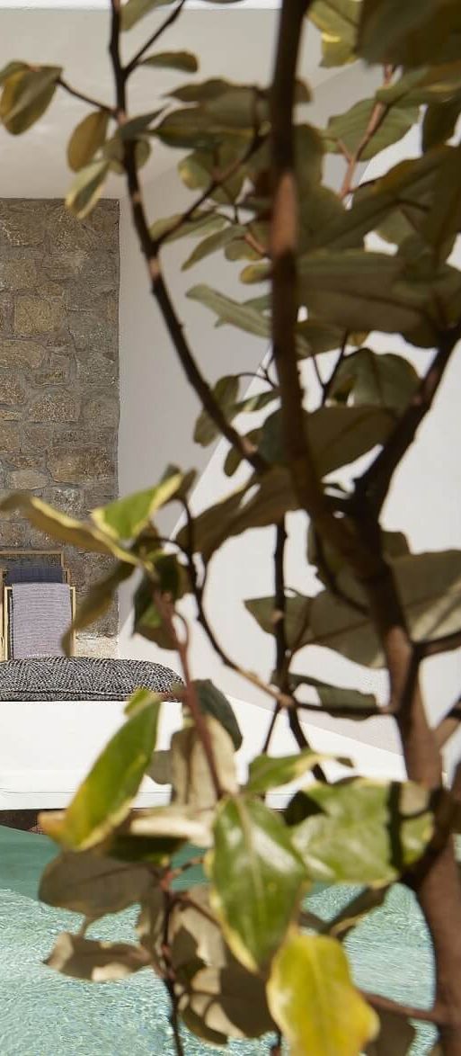 Private suite at Once in Mykonos featuring a shaded patio with outdoor seating and private pool