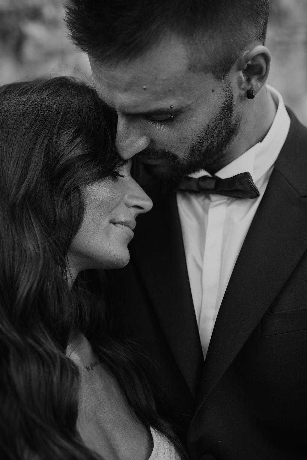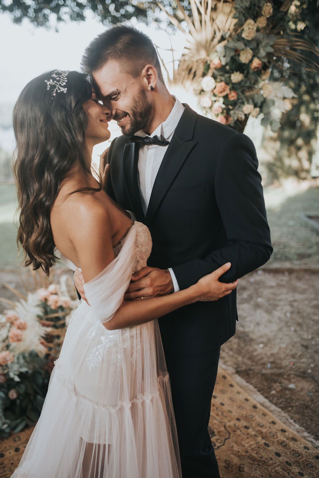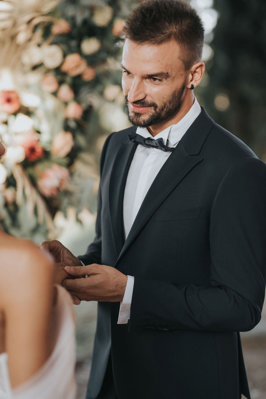Thomas chose an elegant black Emporio Armani suit and Sarah wore a Berta wedding dress from the Muse Collection. A romantic blush bridal gown with cold shoulder detail that created an elegant yet sexy look. Sarah completed her look with a loose, wavy hairstyle and light makeup to enhance her natural beauty.