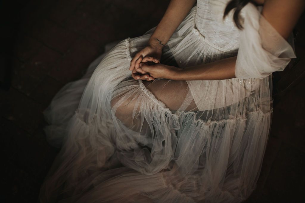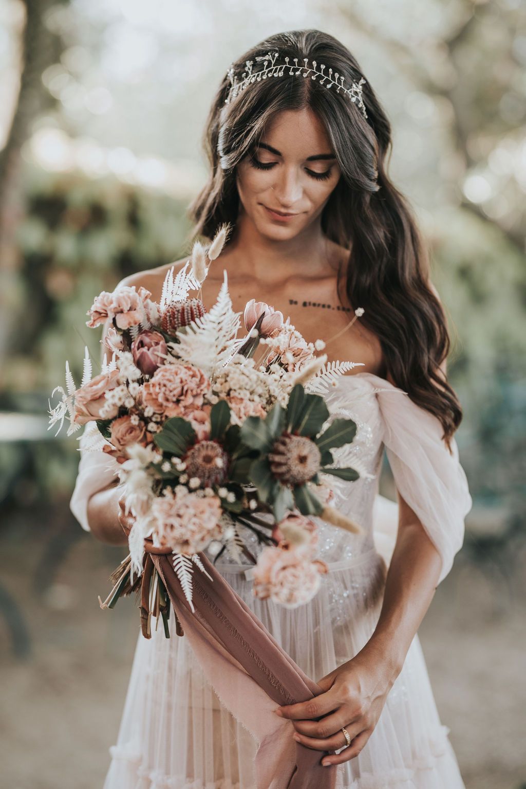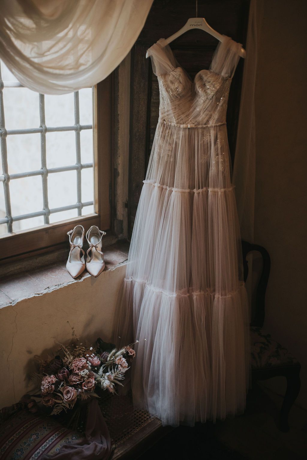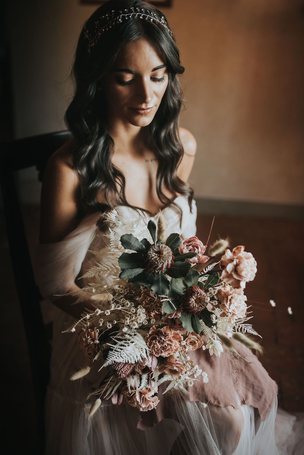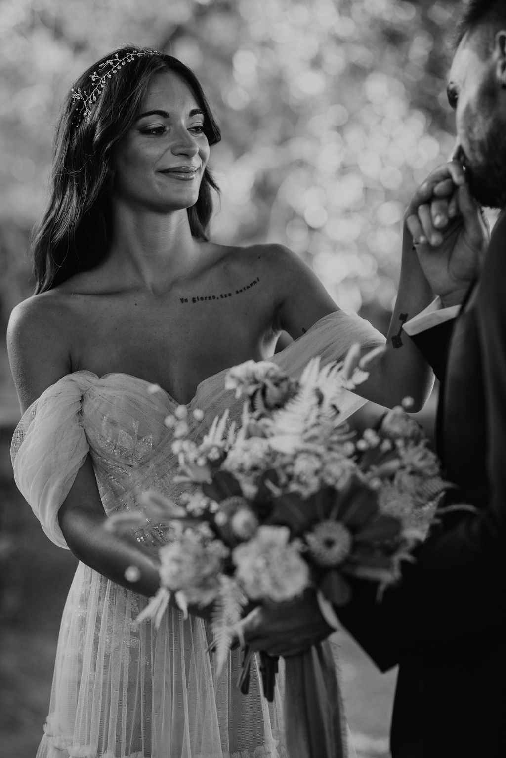 Tuscany Elopement With First Look And Off The Shoulder Wedding Dress