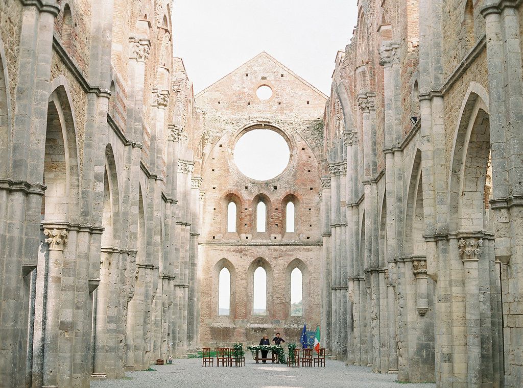 Borgo Santo Pietro. It met all our requirements: an old villa with a stunning interior, a picturesque garden, a secluded location, the option of an official registration in the nearby abbey of San Galgano, and a Michelin-starred restaurant.